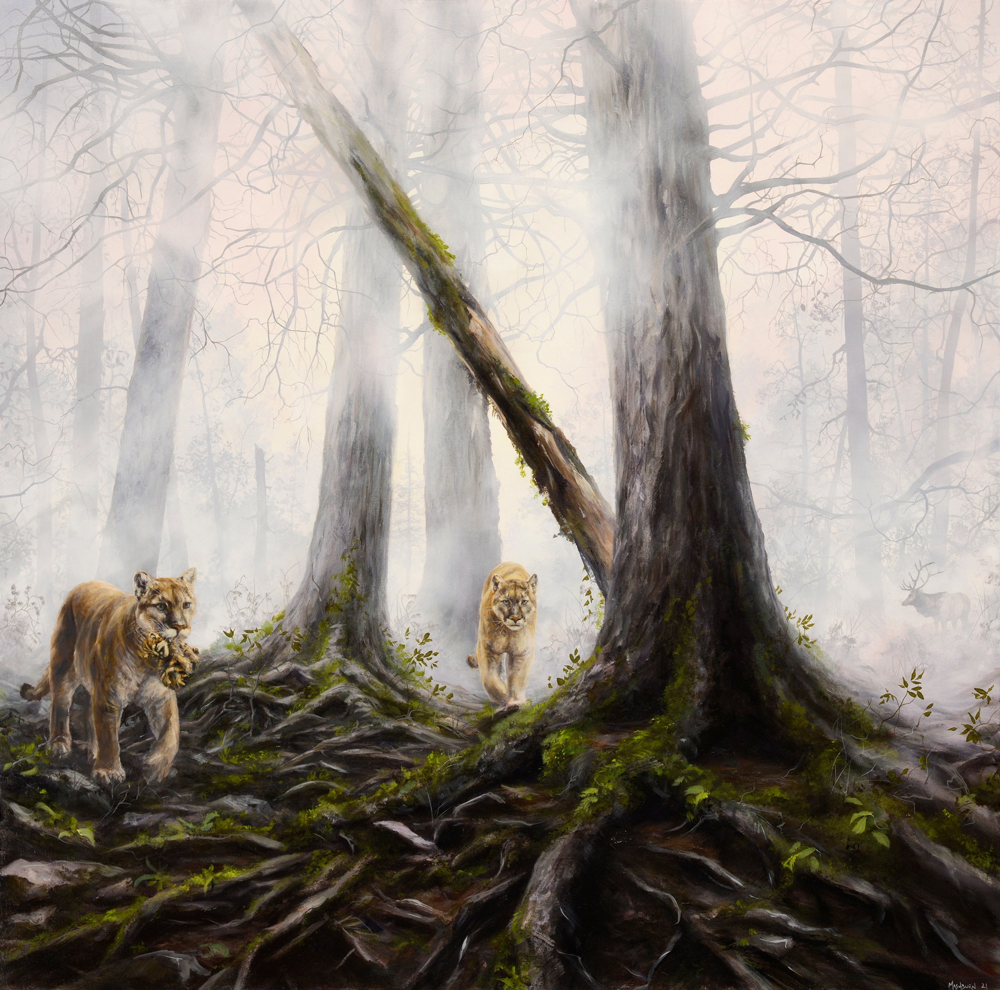 Girl with Dog on a Snowy Street by Brian Mashburn