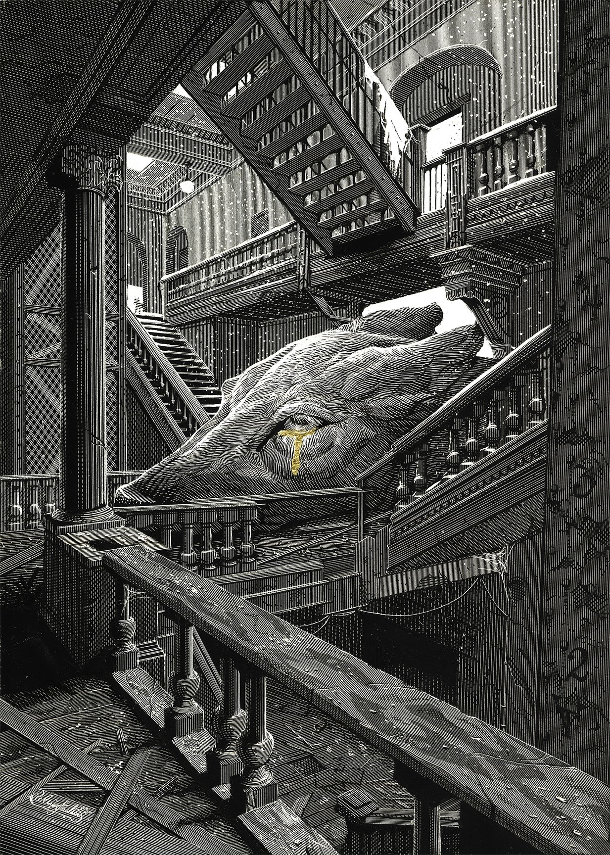 - Gold Leaf, Archival inks, and engraving on Clayboard