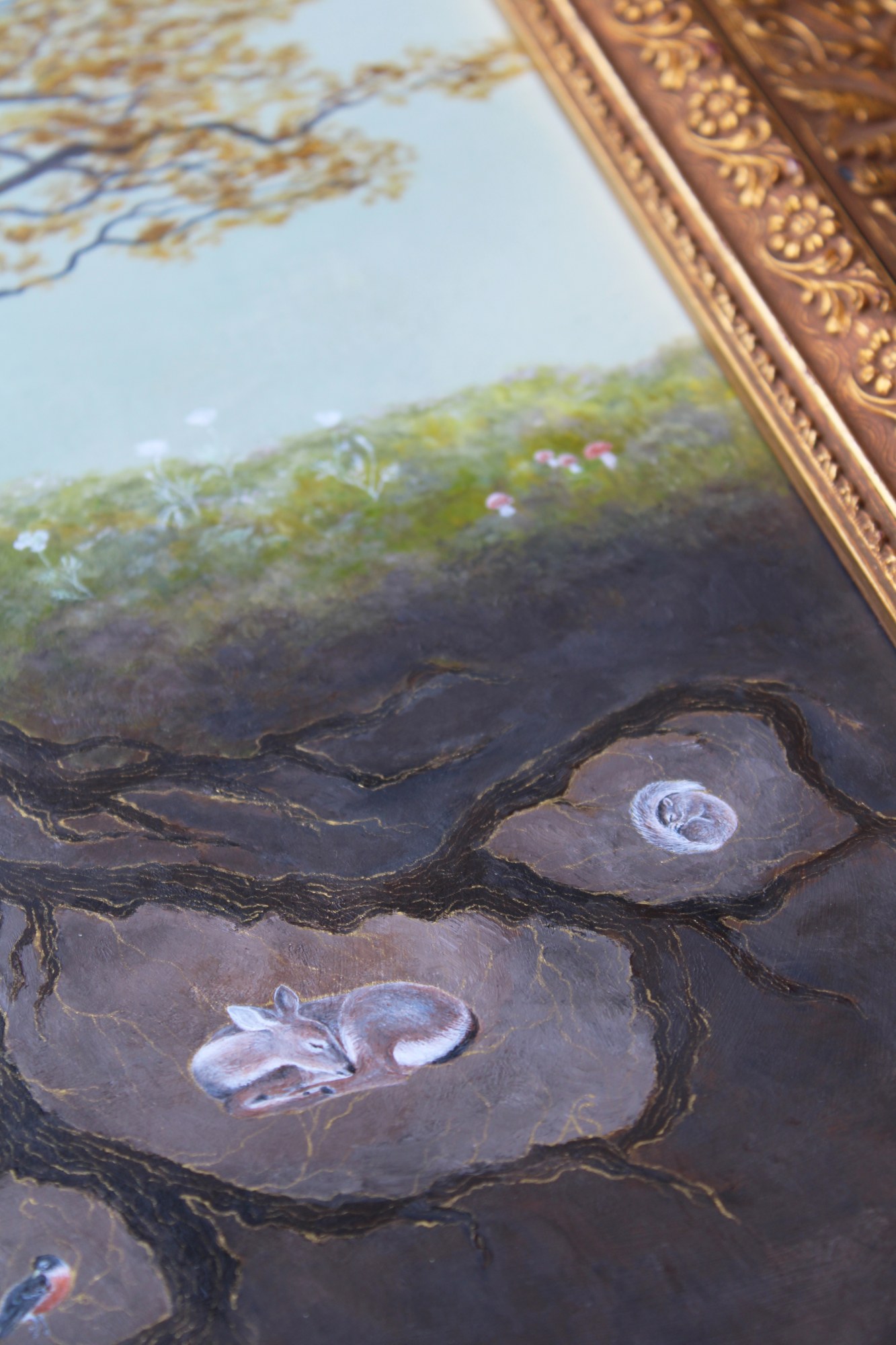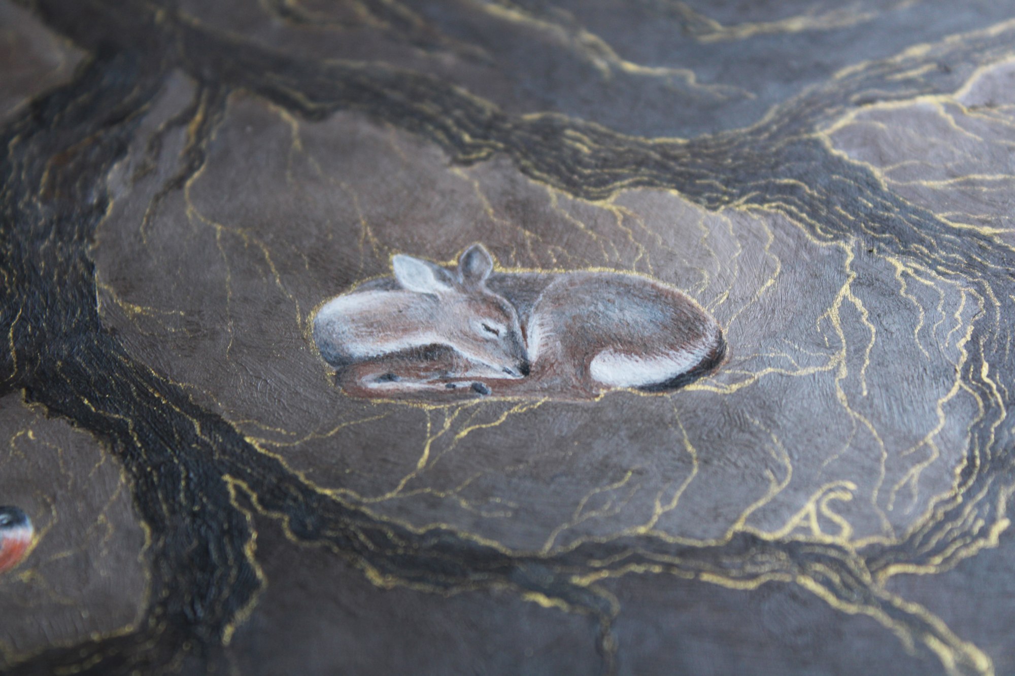• Signature: Signed and dated clay disc as 'Meadow & Fawn' on backside Signed as AS on painting