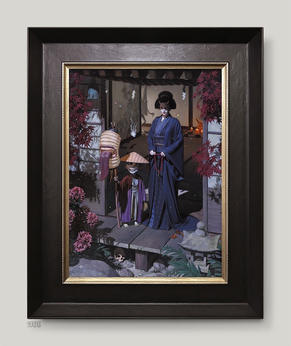- one off hand embellished digital painting on cotton rag stock, mounted on board, varnished and framed