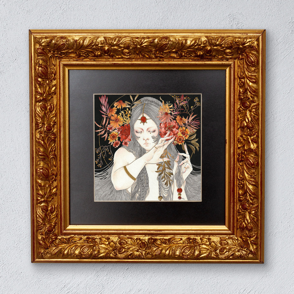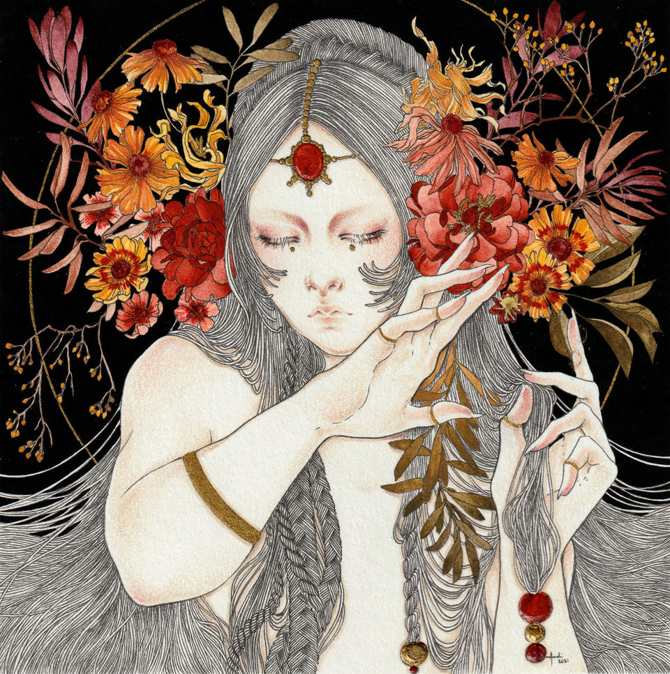• Ink, graphite, color pencils, watercolor, acrylics and gold ink on heavyweight 500gsm paper.