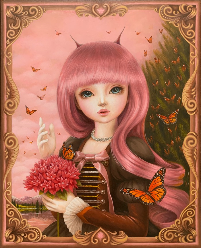 The princess's black dress and frills represent the larva, and her necklace represents the eggs.