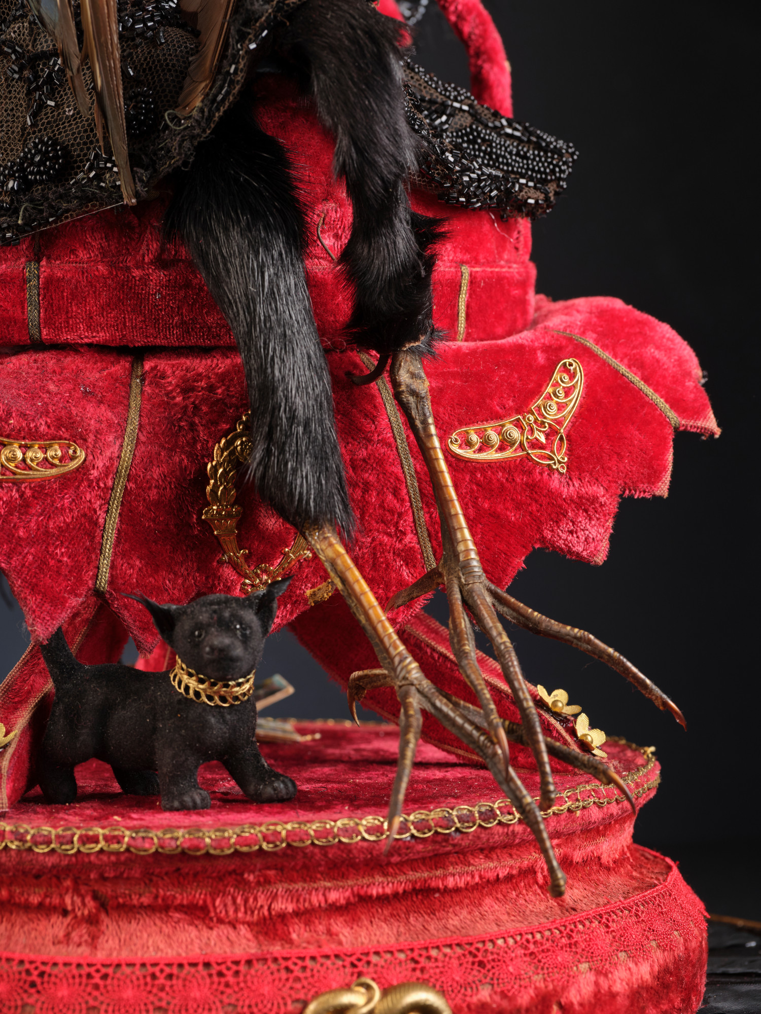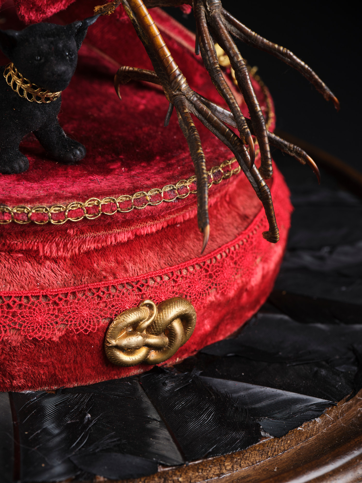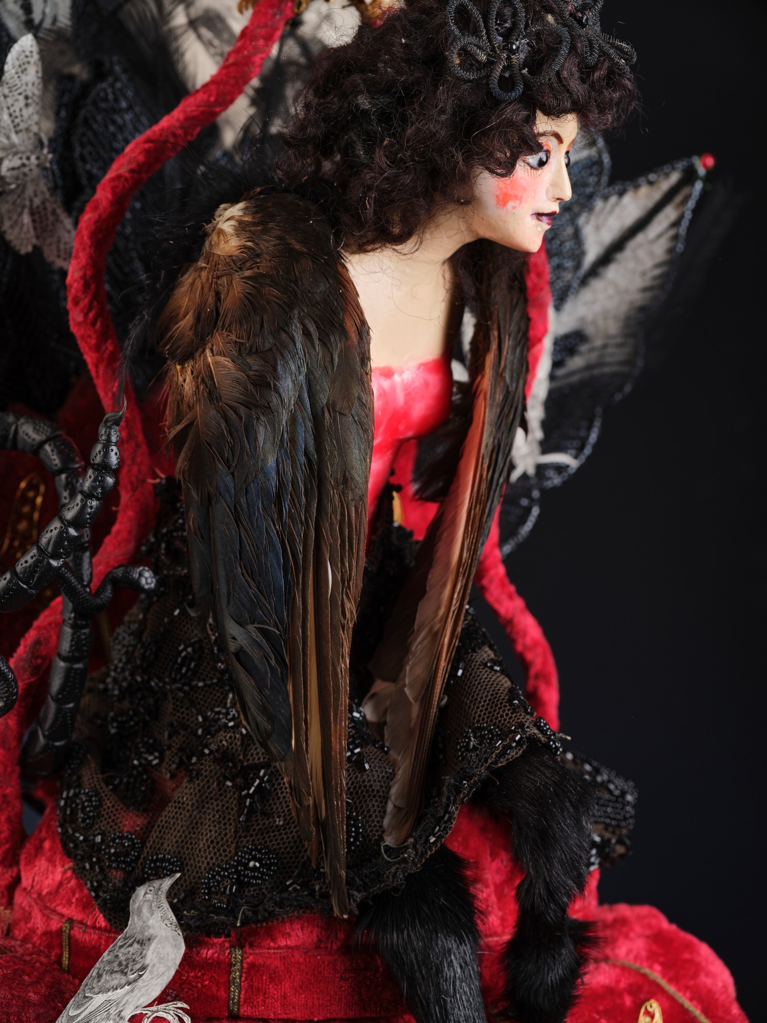 Lucie de Syracuse was born in 1981. She studies contemporary literature. Fond of the 19th century literature, Gerard de Nerval and Ernst Theodor Amadeus Hoffmann work speak to her about rebellion and ecstasy.She finds out about the new form of publishing, the romantic books adorned with grotesque and fantastical drawings from such rare illustrators as Johannot and Nanteuil.It’s in the basements, the attics, the antiques markets where she collects the left aside, broken or strange toys, the dried flowers or objects from the past that will offer her the best material for her visual playlet. She builds, inside of bulged glass frames, poetically strange pieces.A strange familar, map of a forgoten journey, who puts the eye in the middle of a fantasy game. Frames where unsettled powers are at work. Frames where fragments, litter, broken pieces do question the splitting of our thought, of our memory. Frames where the sublime and the grotesque meet up in all the spaces left open to imagination.