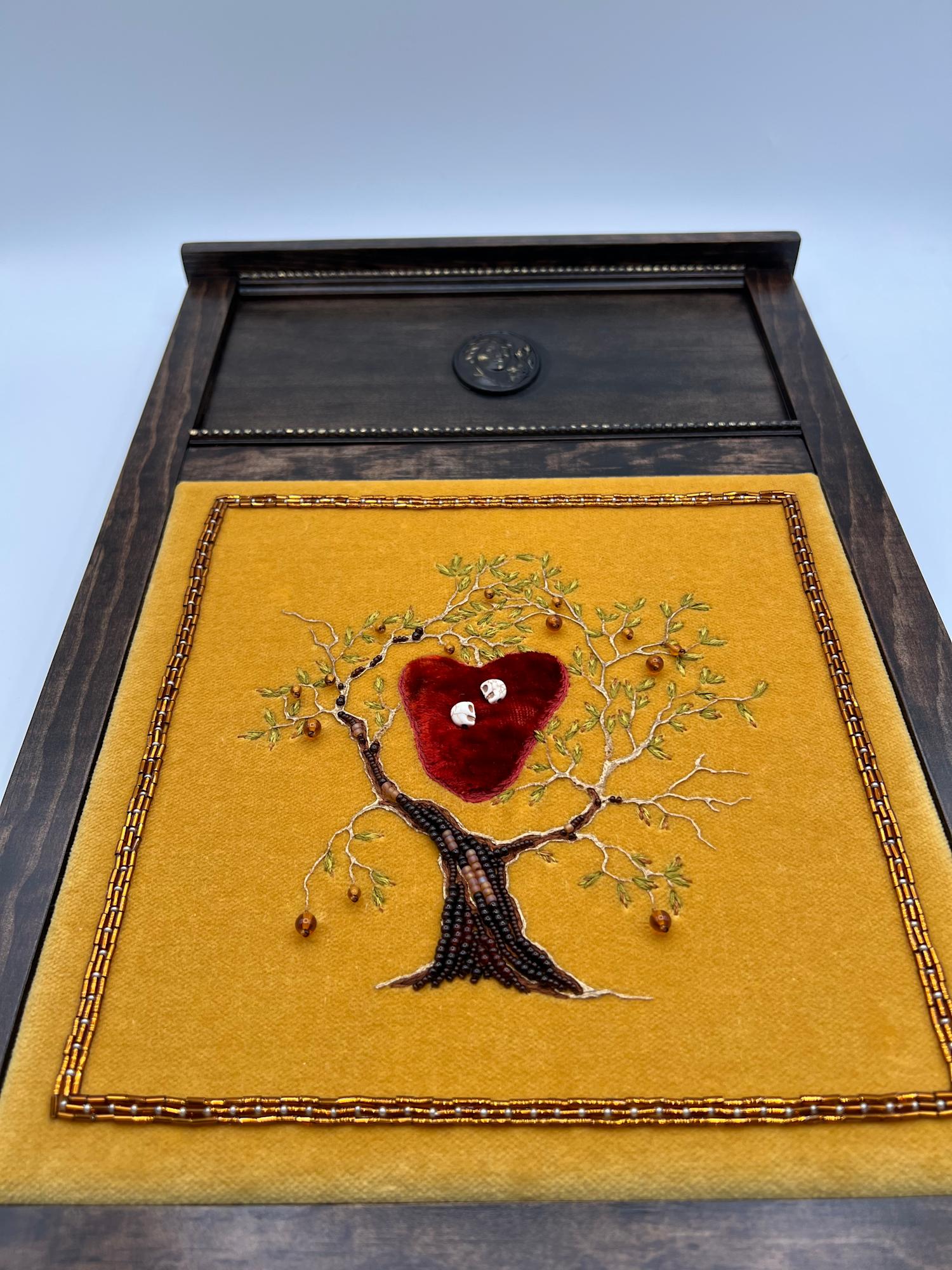 • Hand embroidery and beading on cotton velvet with elements of antique textile, mixed media