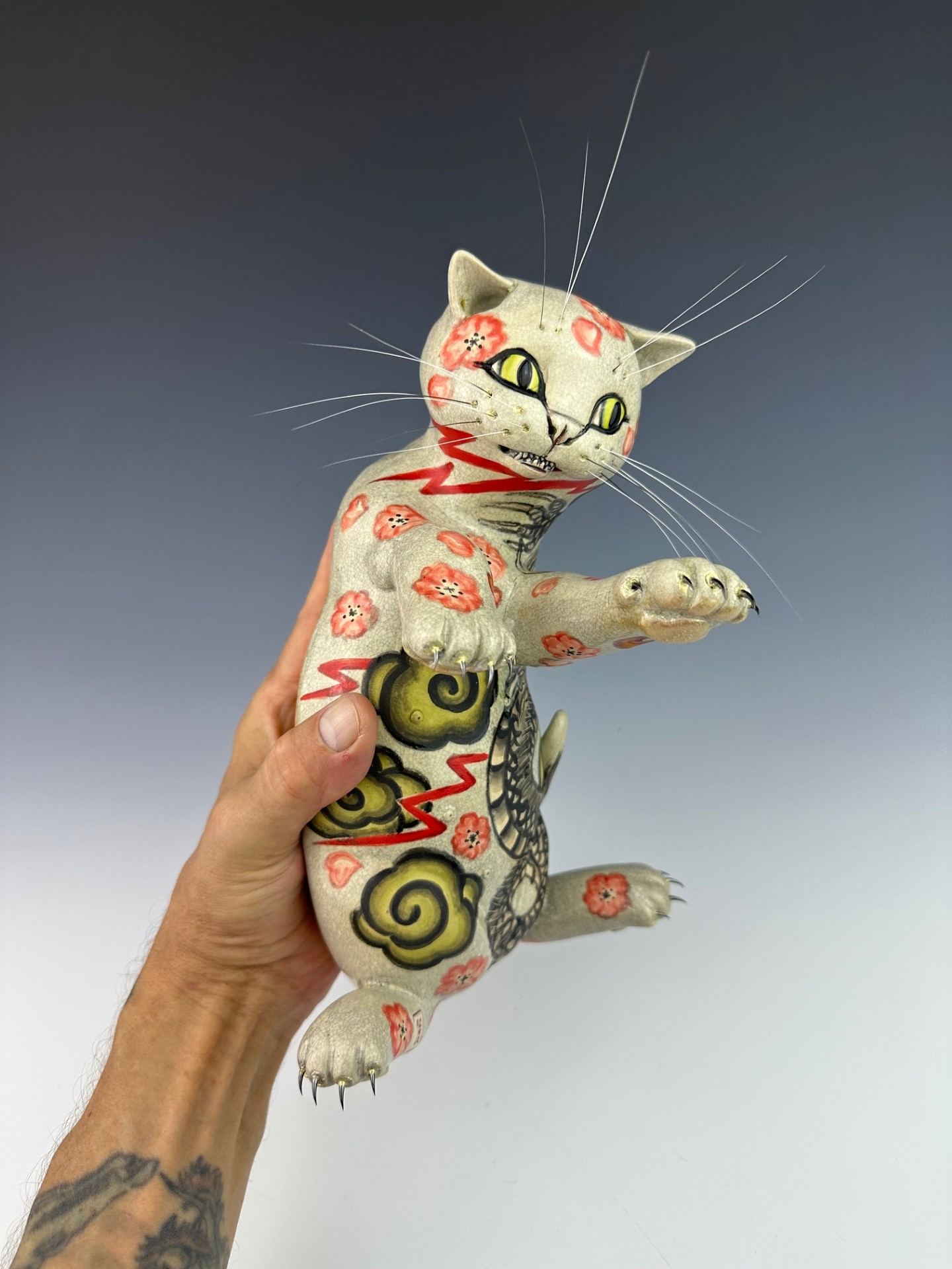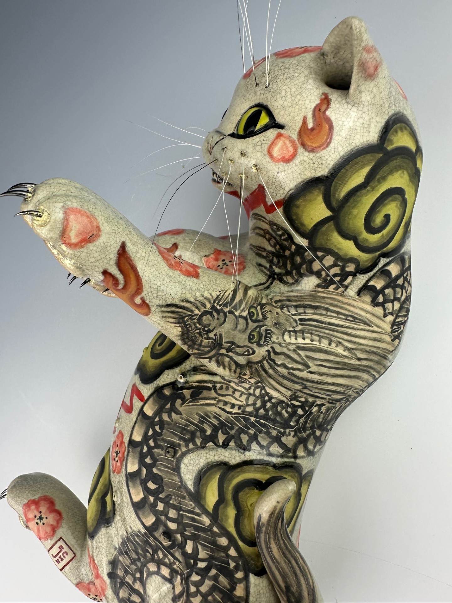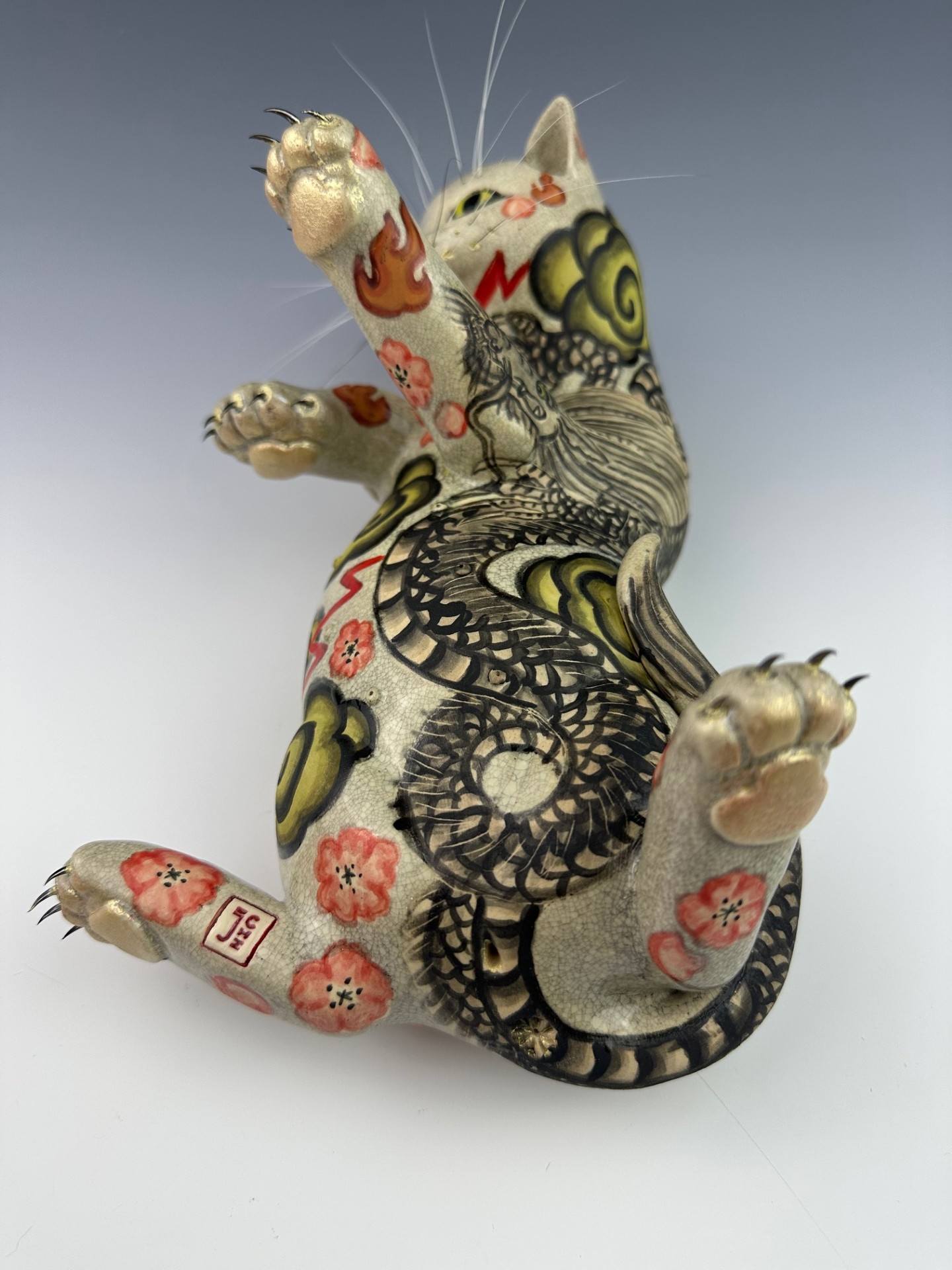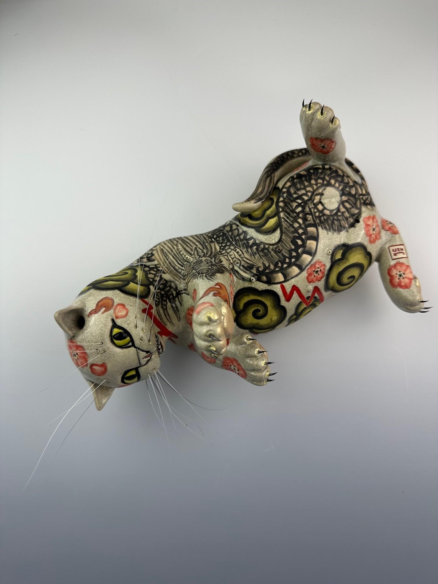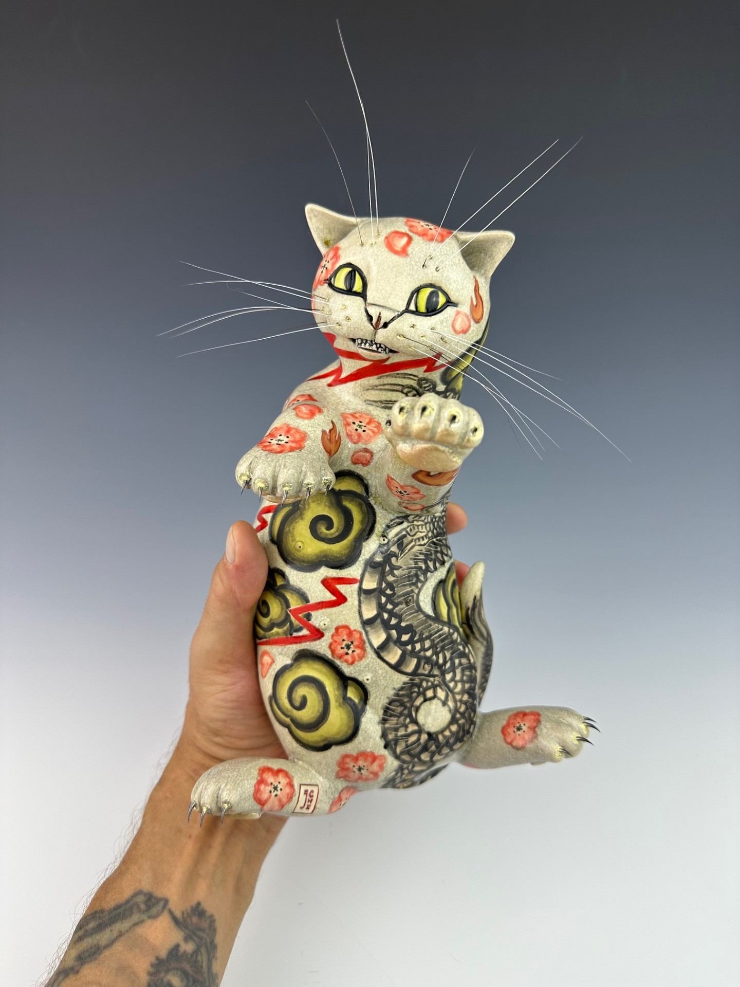 - stoneware, underglazes, glazes, gold pigments, steel and cat whiskers