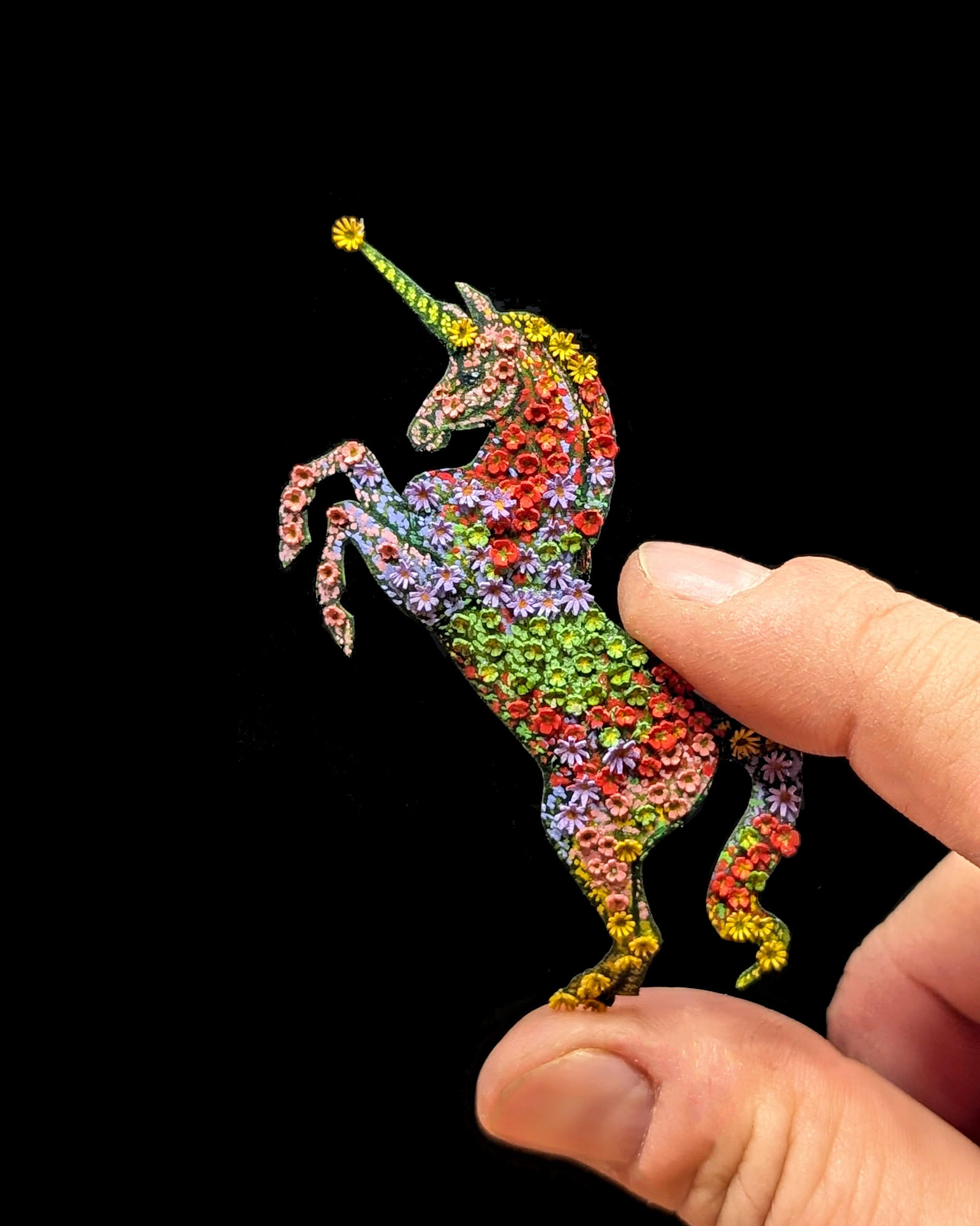 - Subject Matter: Unicorn, flowers, night, nature
