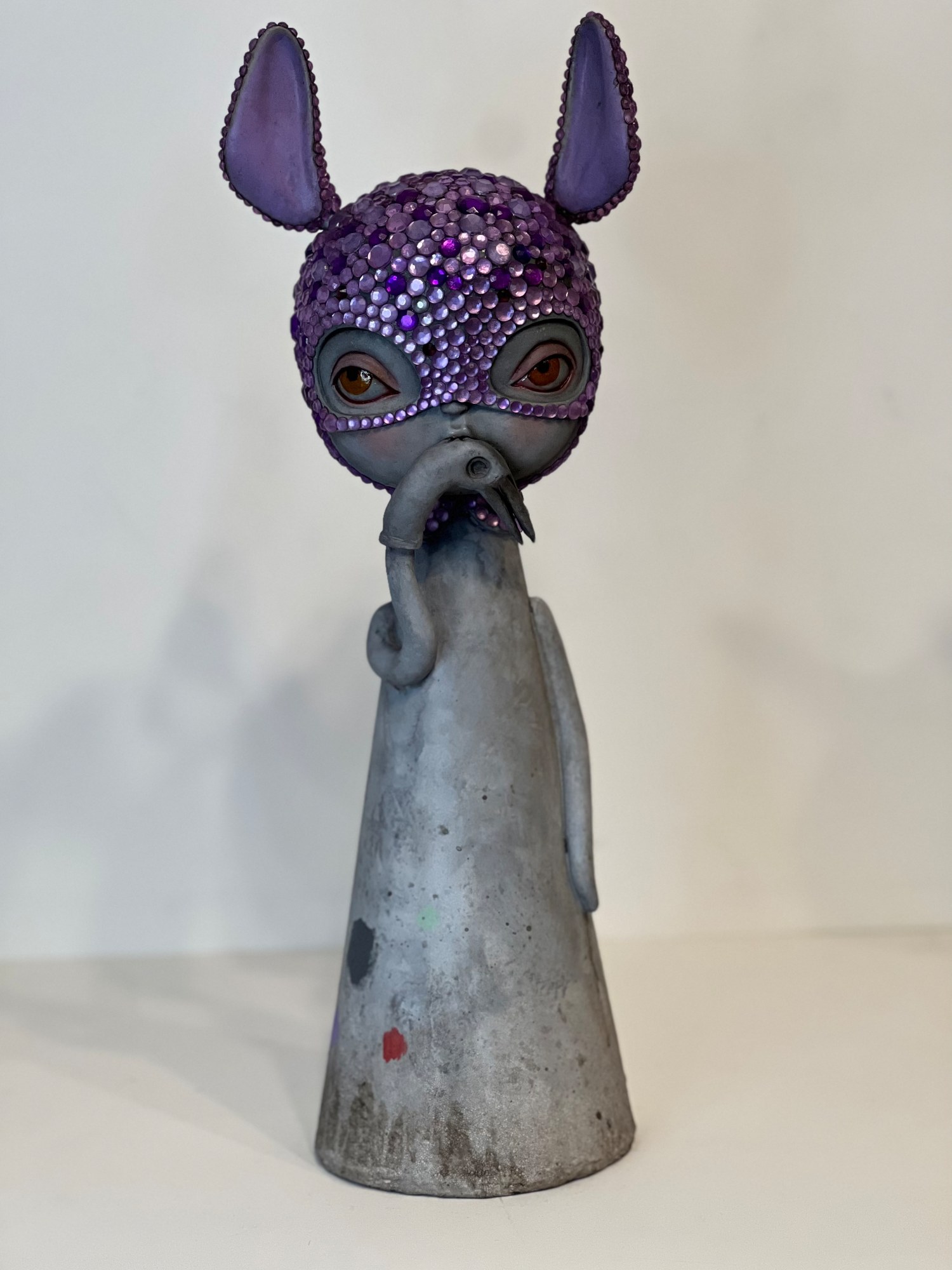 - Oil, acrylic, epoxy resin, rhinestones on cast resin