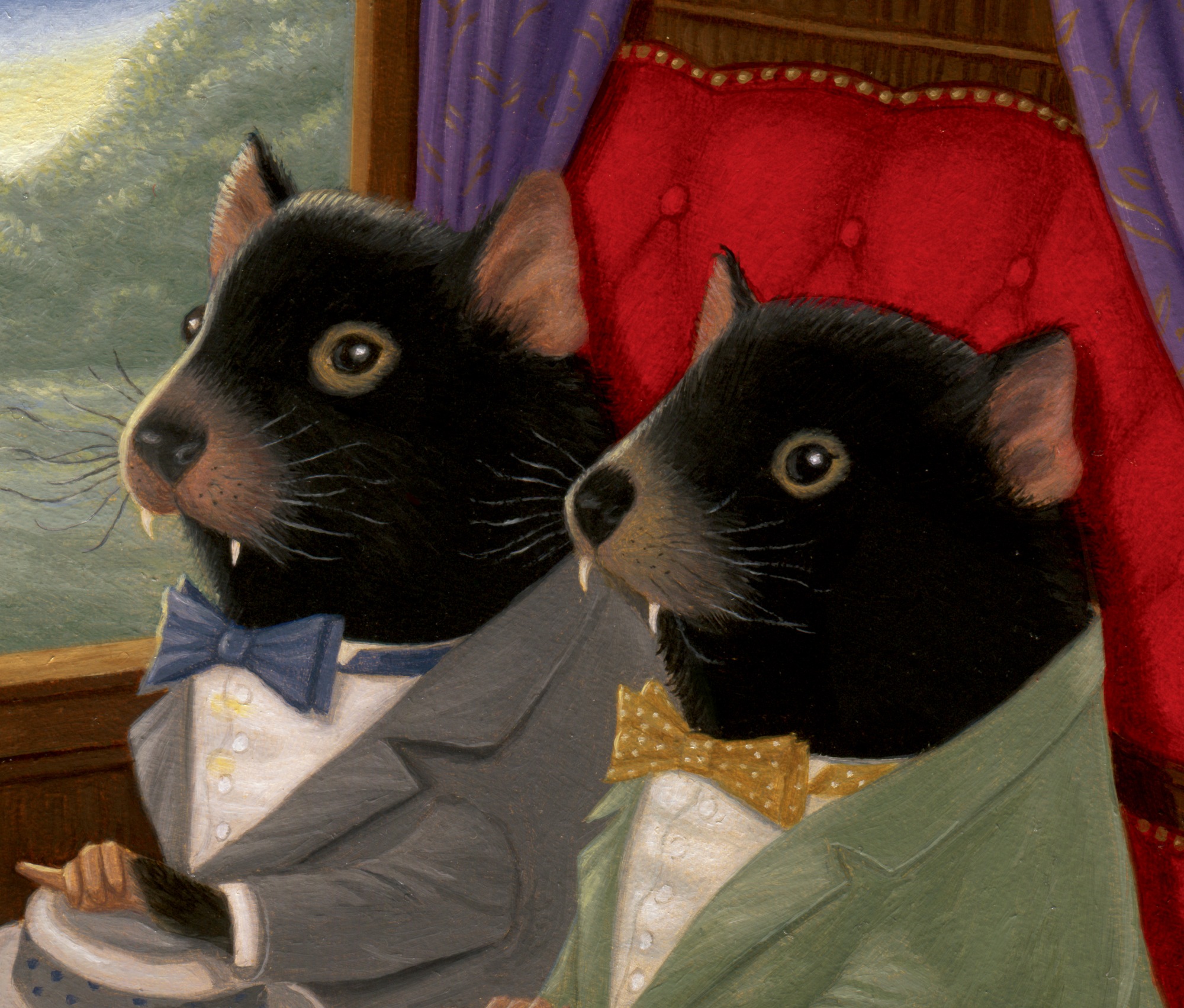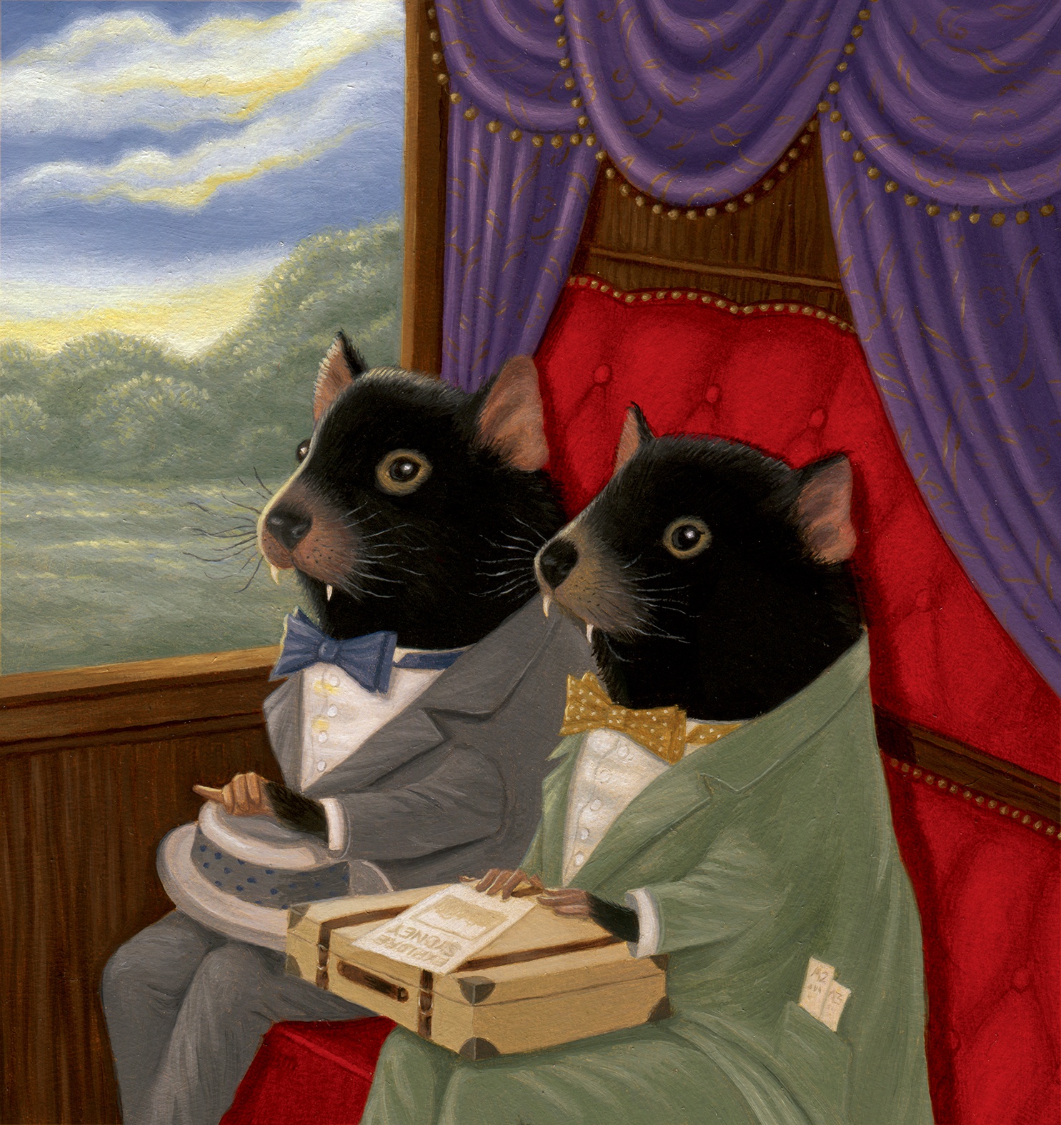 Montrose and Alejandro are going on an adventure! Best friends since they were joeys, through the best and worst of times! They both like apricot jam and scones, nut paste of all kinds, swimming and collecting bugs. There are a FEW things that they can never agree on, though, which always ends up in horrifying fist fights and torn trousers!!! Someone always has to separate them. Fortunately Alejandro is excellent with a needle and thread. But...they always make up and apologize. This trip was actually a surprise from Montrose to Alejandro for a kerfuffle from a few weeks ago.