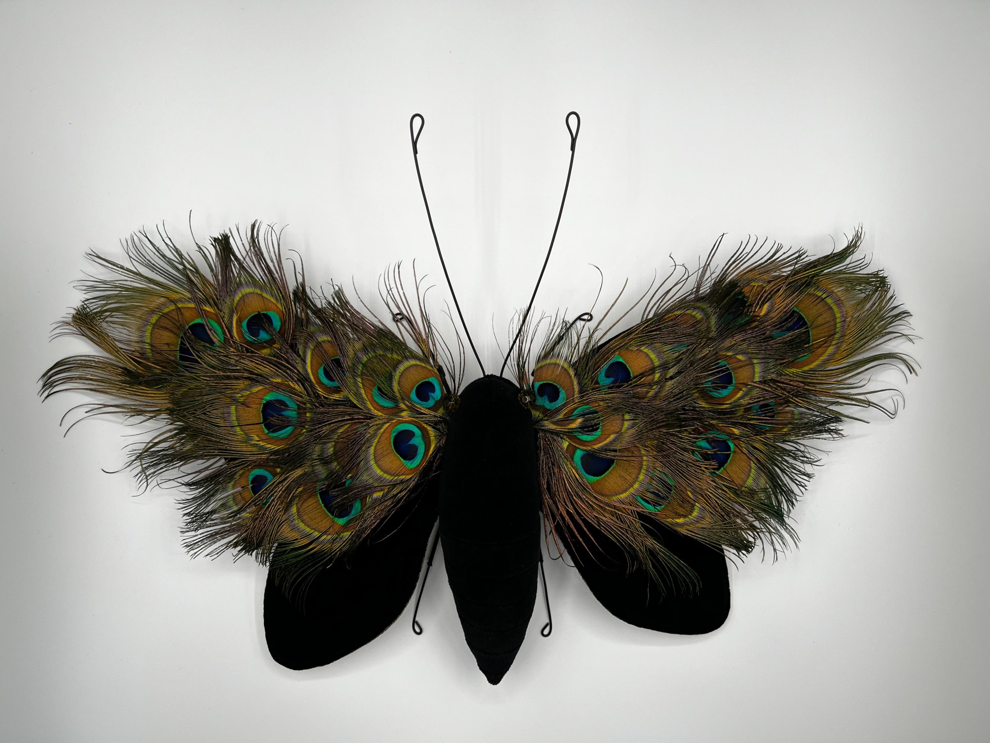 Textile sculpting with peacock feathers