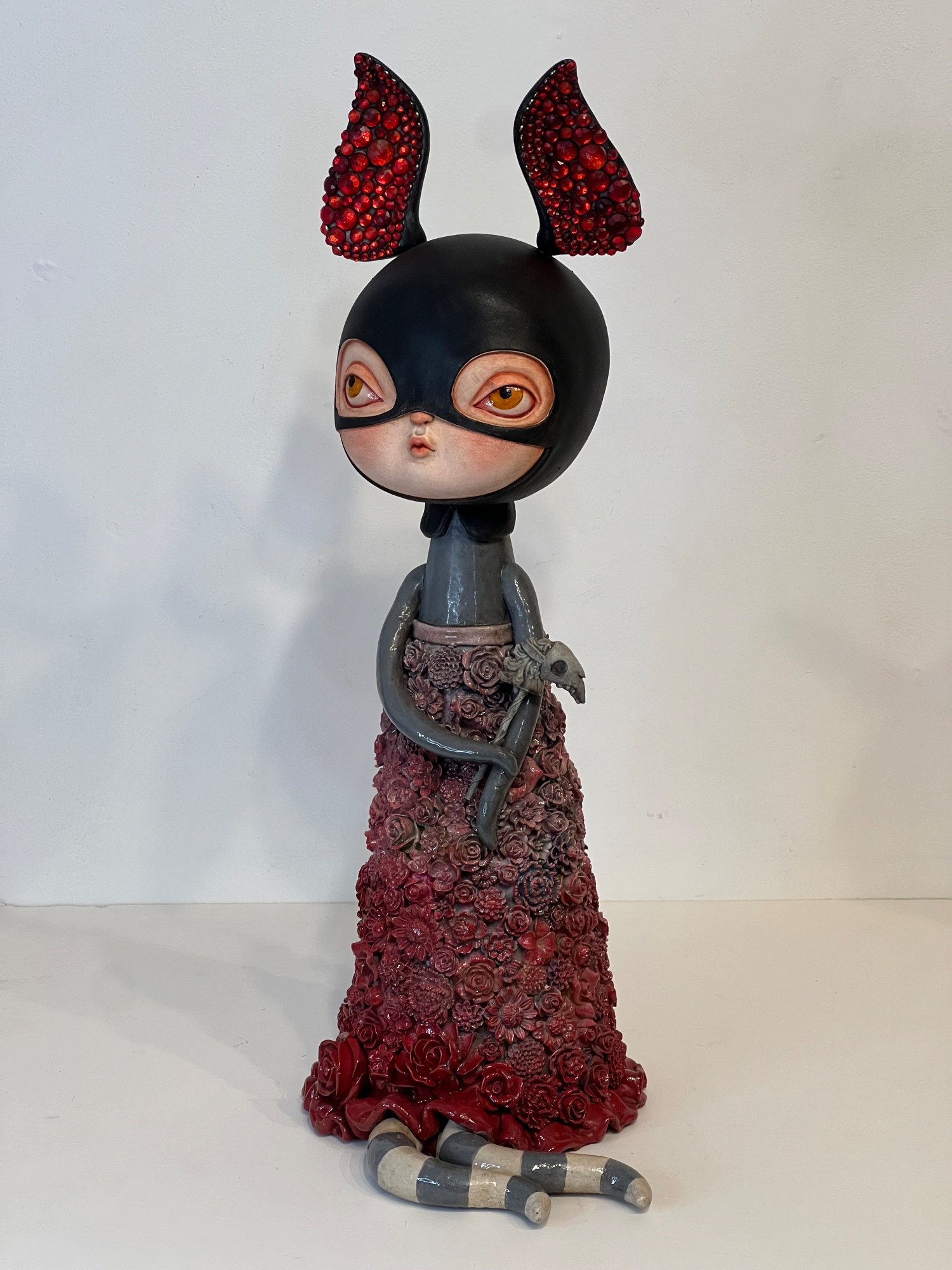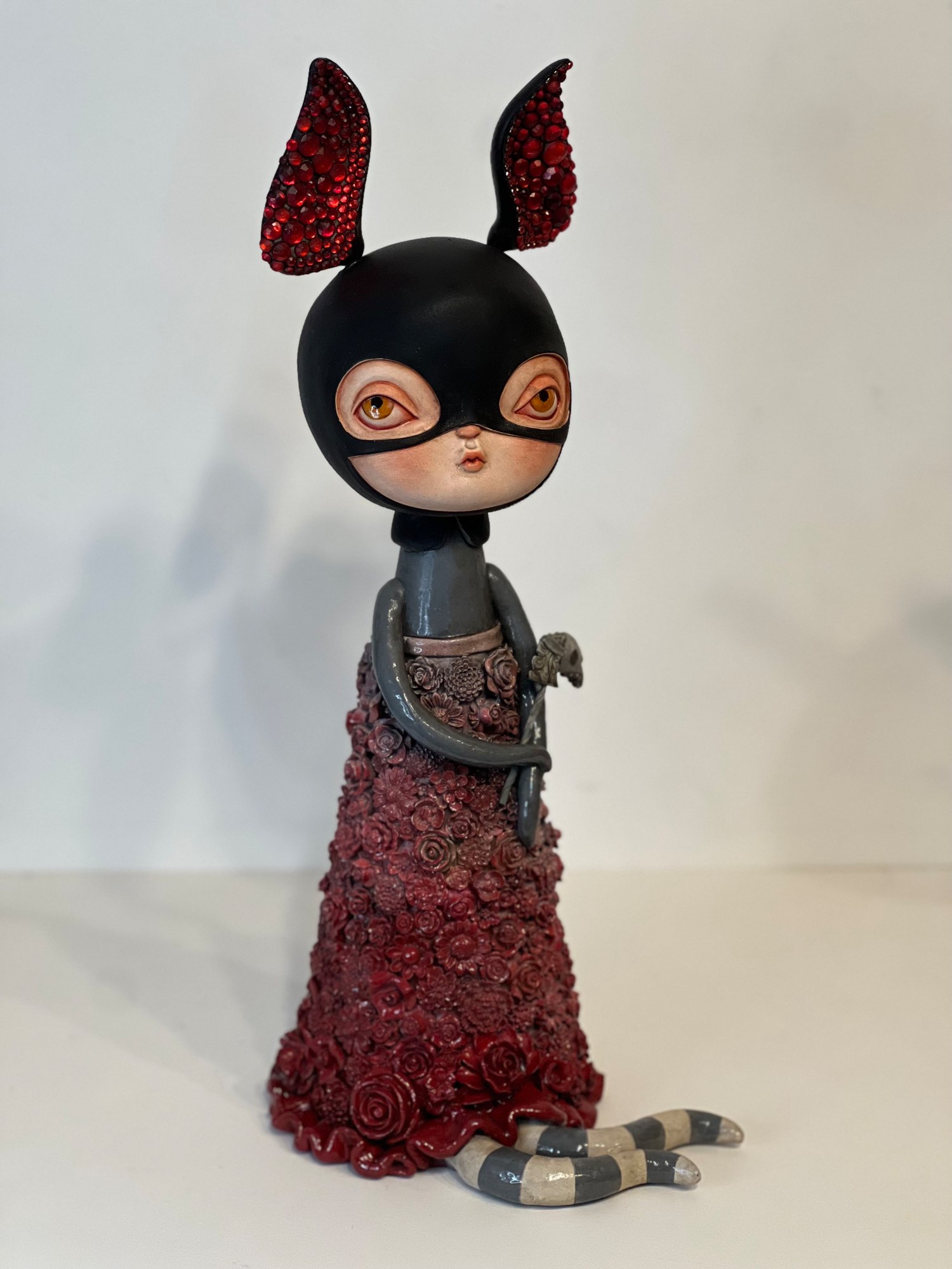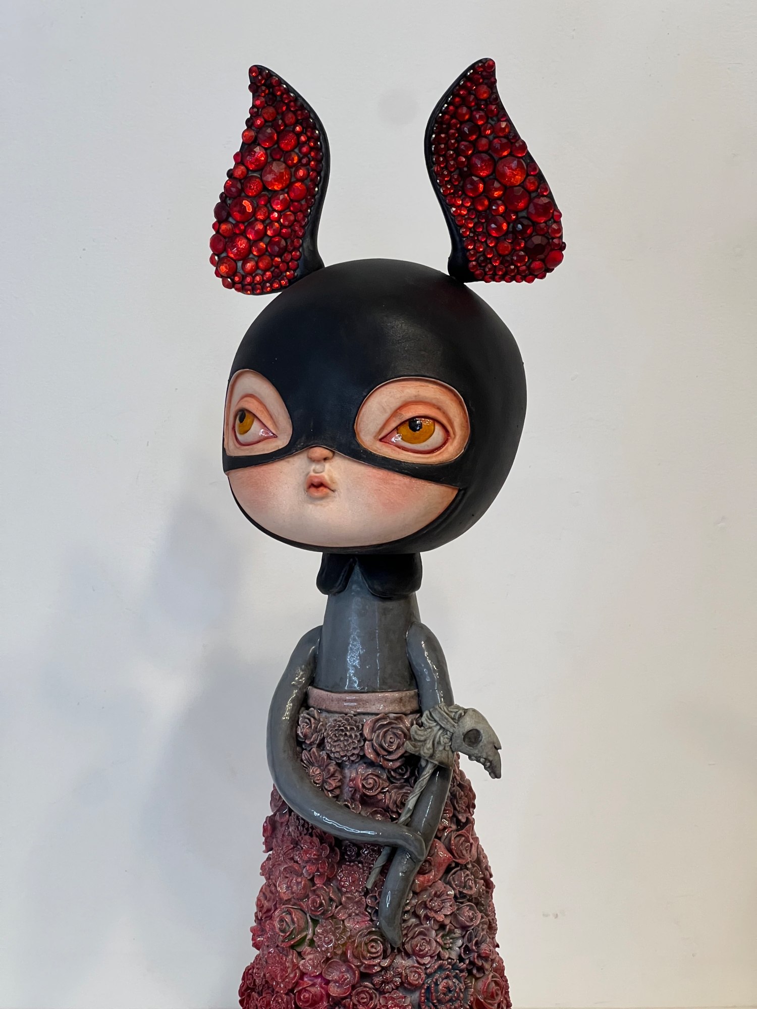 - Oil, acrylic, rhinestones, epoxy resin on cast resin