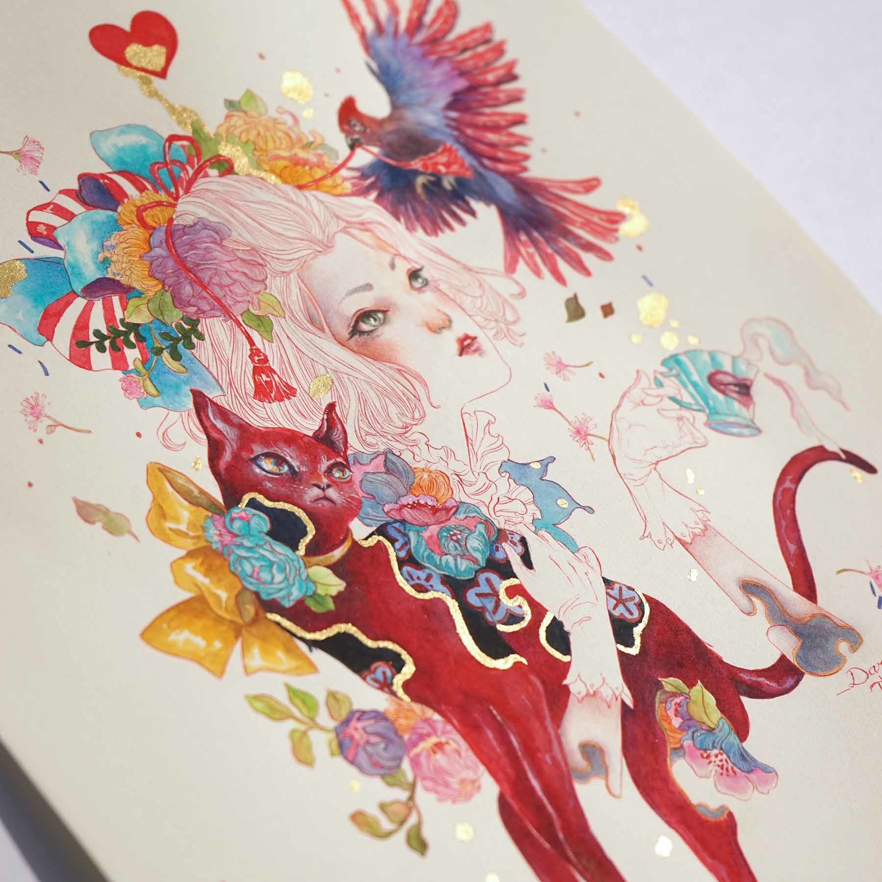 • Ink, watercolor, gouache, colored pencils, 24K gold