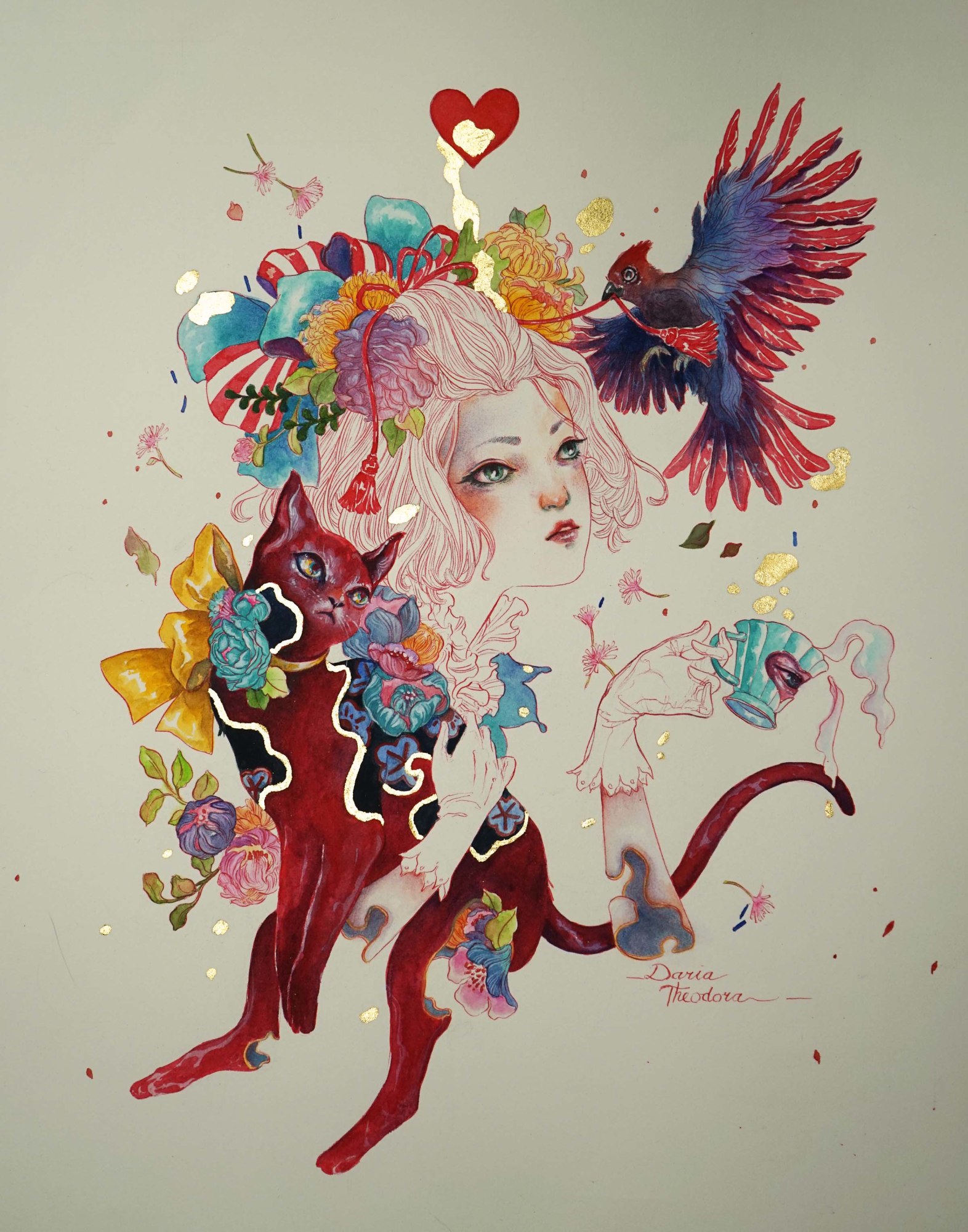 • Ink, watercolor, gouache, colored pencils, 24K gold