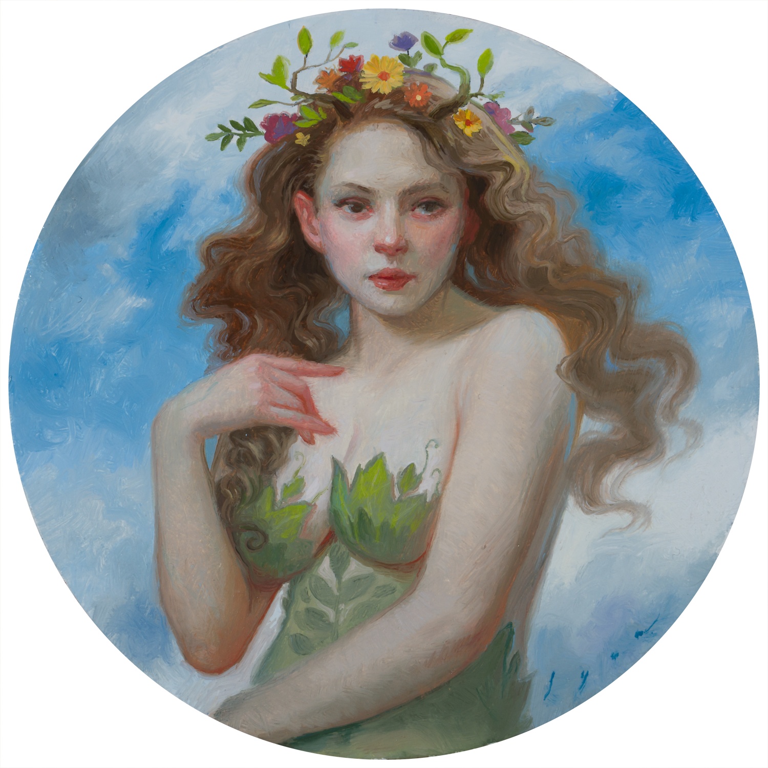 - oil on wood panel with 22k gold leaf on the heel of the panel