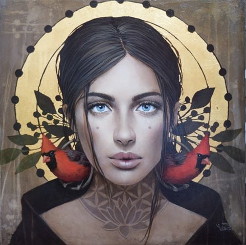 • acrylic and gold leaf