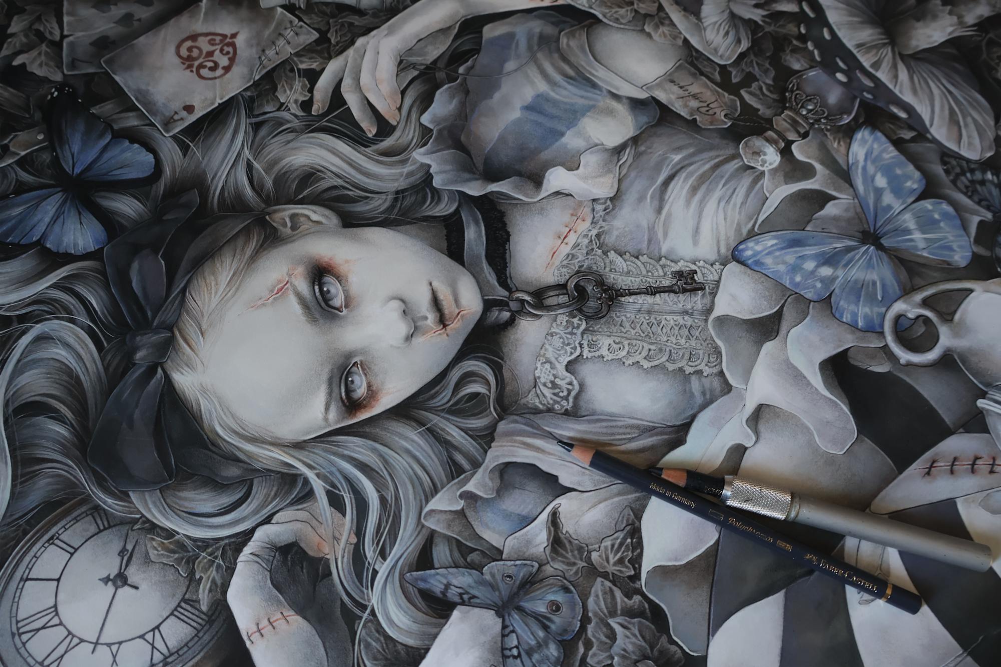 • mixed media - watercolor, acrylic, gouache, soft pastel, markers, inks, oil, and colored pencils on corsican paper 352g