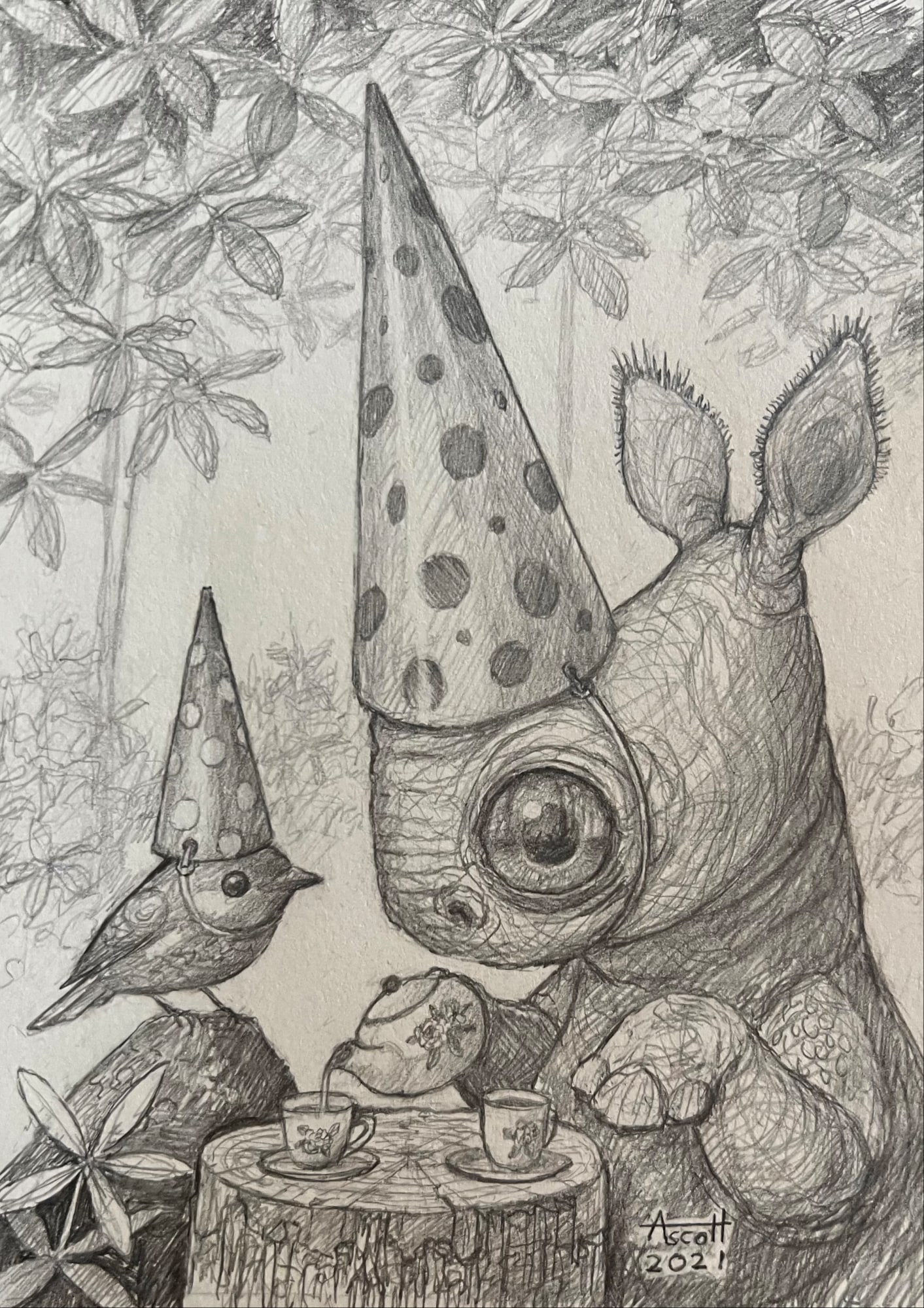 - Signature: "Ascott 2021" at bottom right. Full signature, title, and year is written on the backside of the paper.