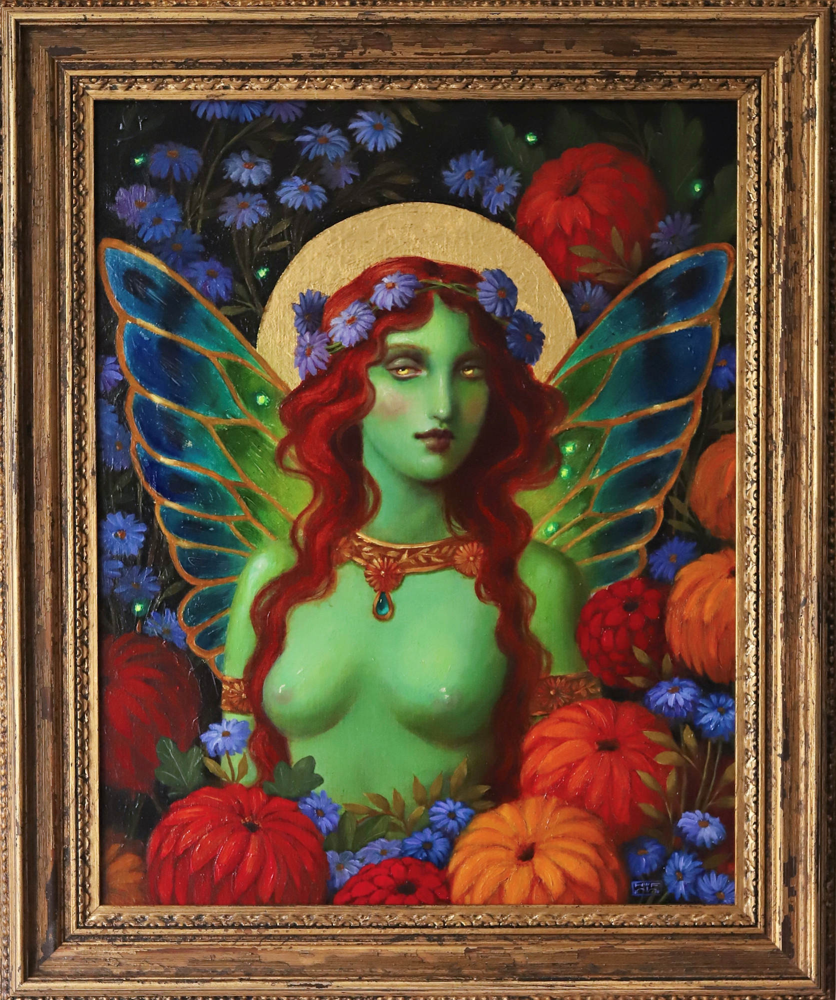 This piece explores colour, texture, and the passage of time. It’s been with me for years, occasionally resurfacing as I add another layer, or, repaint it entirely, then tuck it away again. Originally begun for a Beautiful Bizarre show three years ago, it wasn’t ready in time. Now, she returns for another Beautiful Bizarre exhibition, bearing the weight of history and enough paint to sink a ship. What you see on the surface is just the latest chapter, resting atop many hidden iterations beneath.