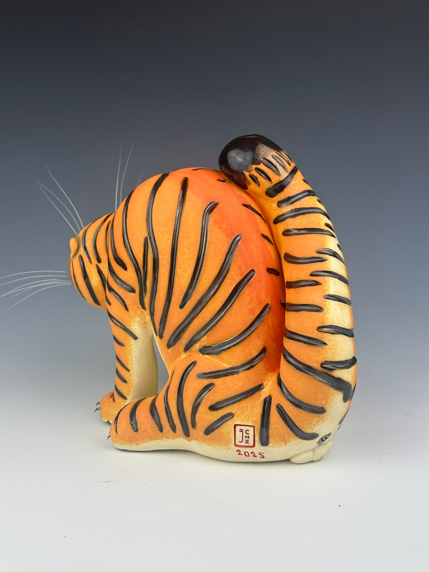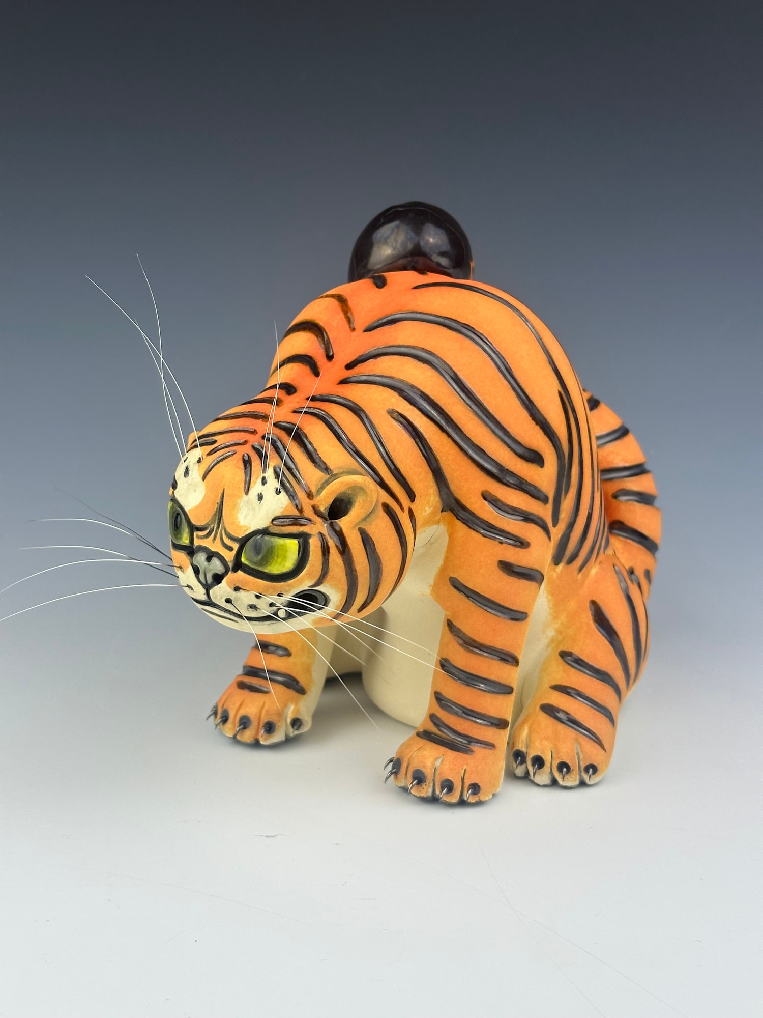 • Ceramic stoneware, underglazes, glazes, cat whiskers and steel
