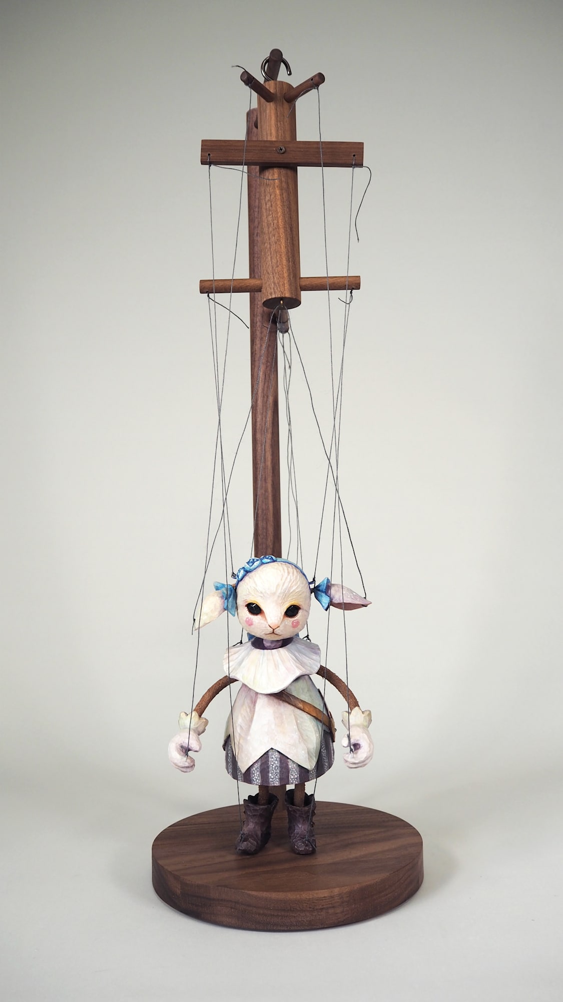 - Subject Matter: A hand-carved wooden marionette of a well-dressed lamb child, embodying loneliness and solitude within her charming appearance.