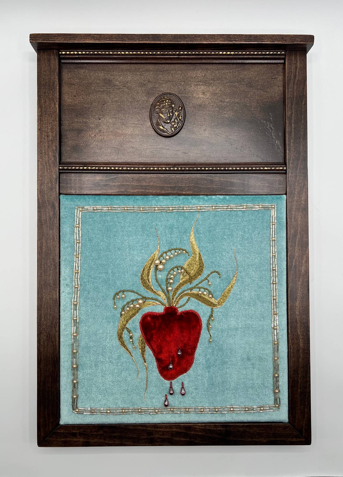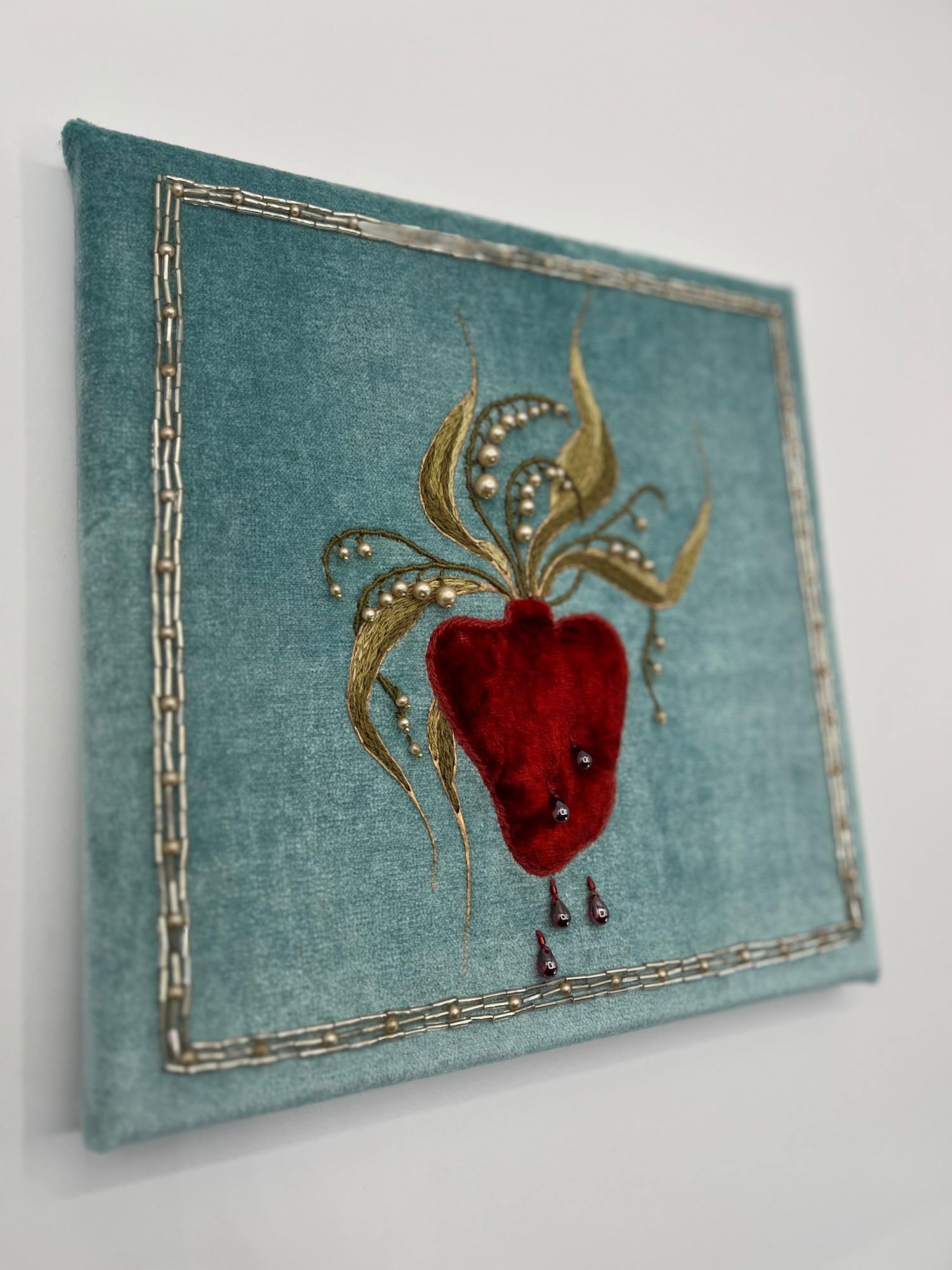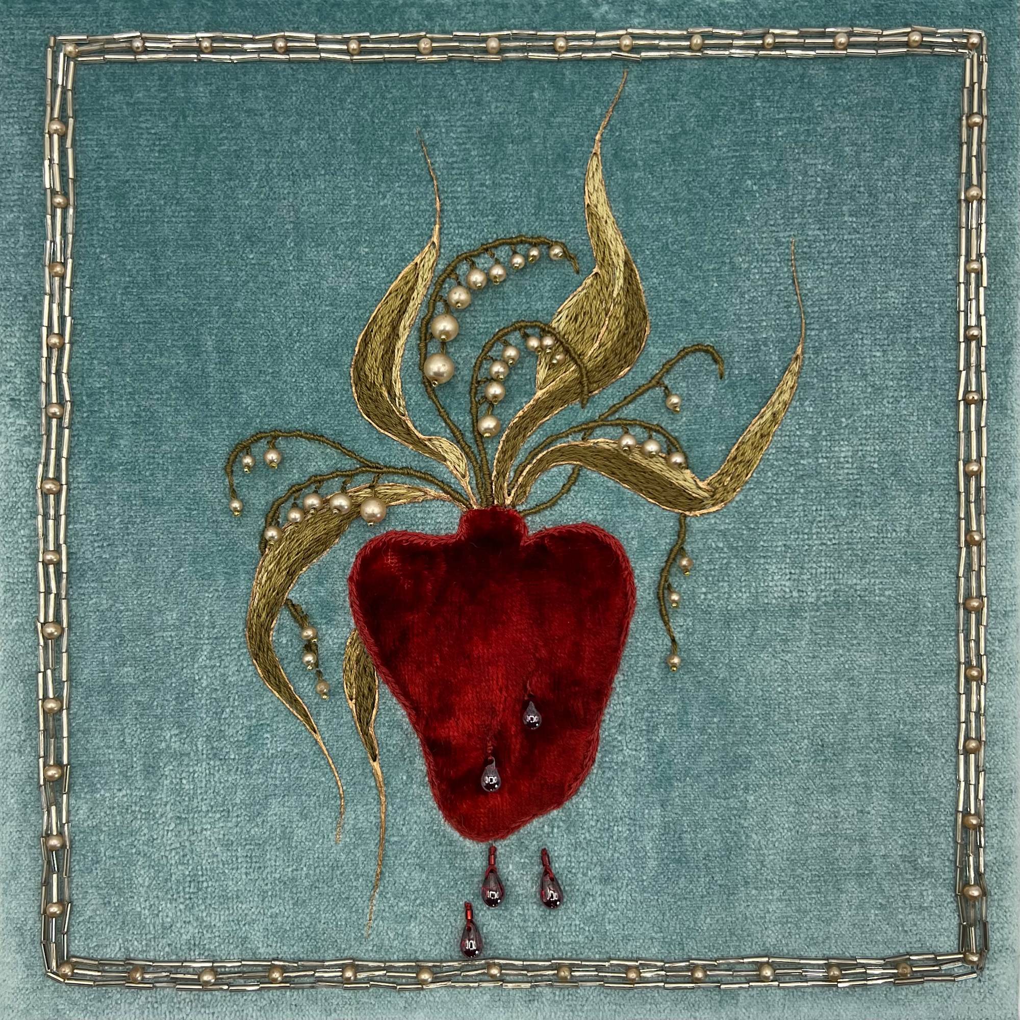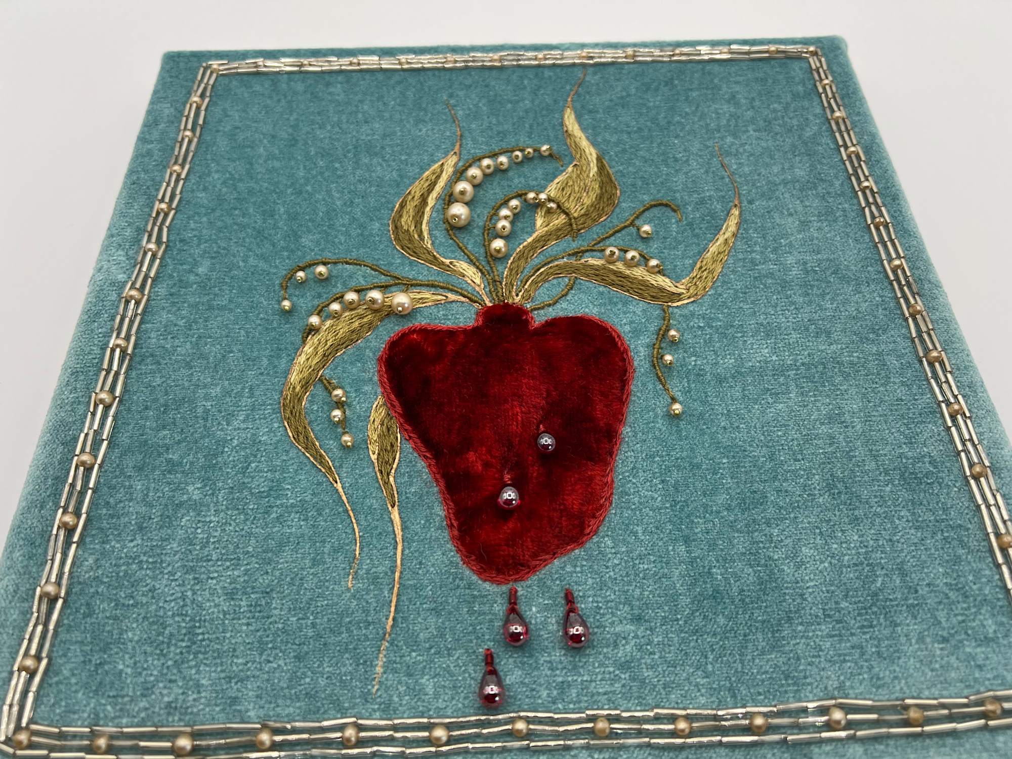 • Hand embroidery and beading on cotton velvet with elements of antique textile