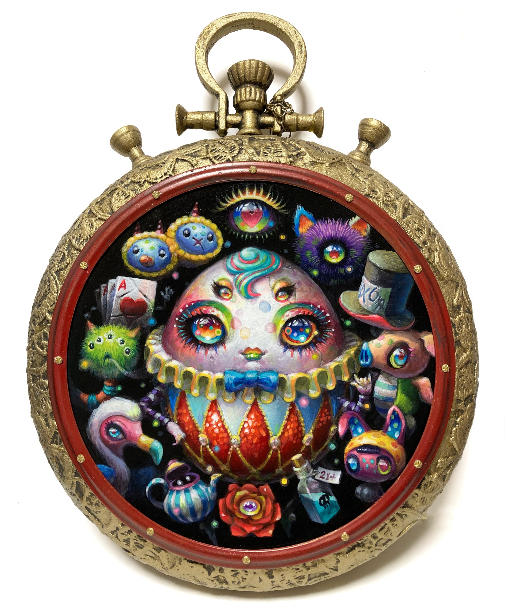 - Acrylic on coated wood board, steel with handmade frame