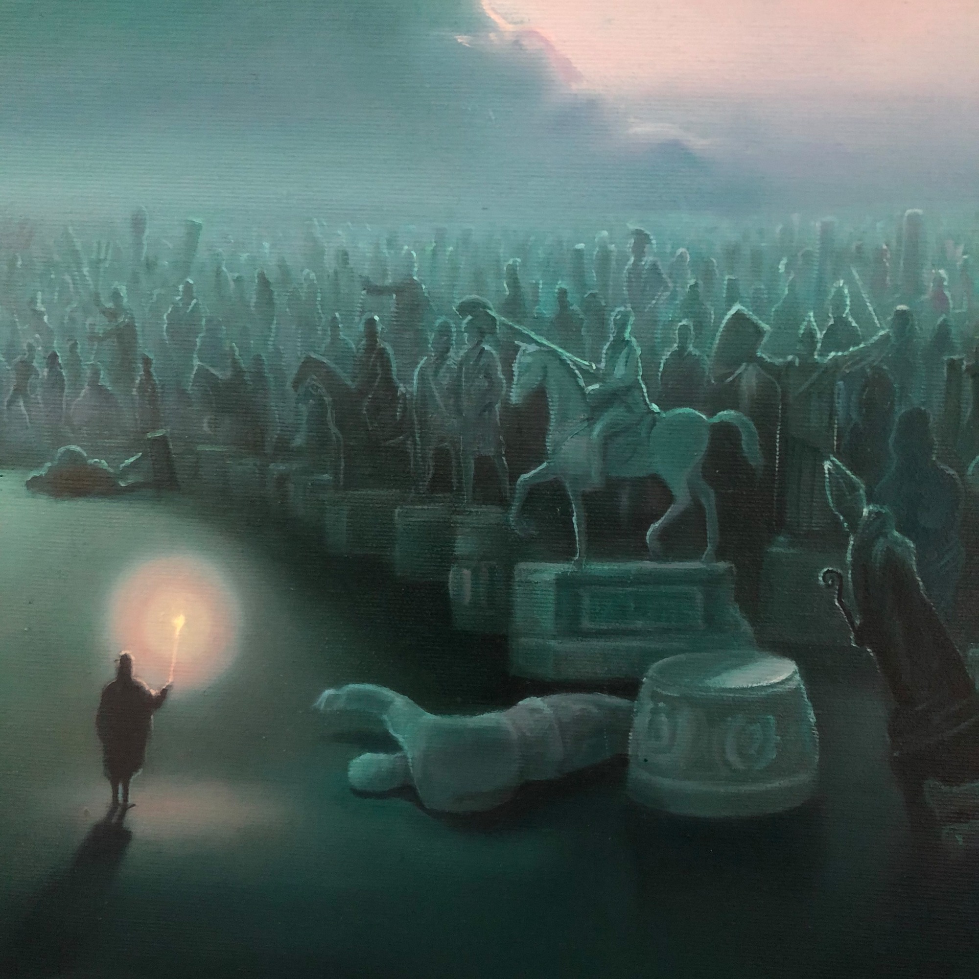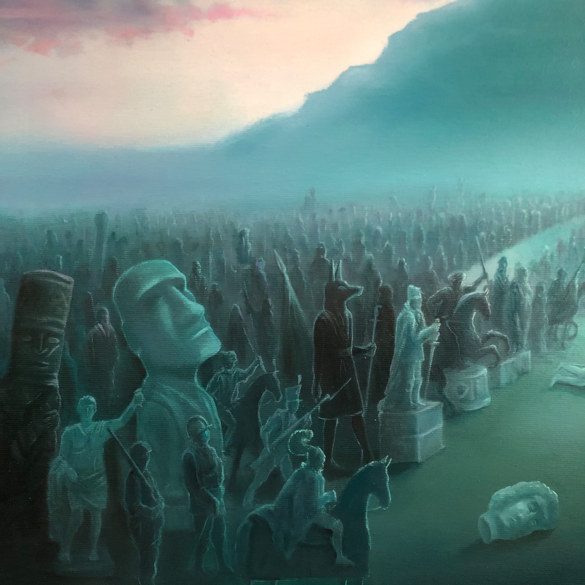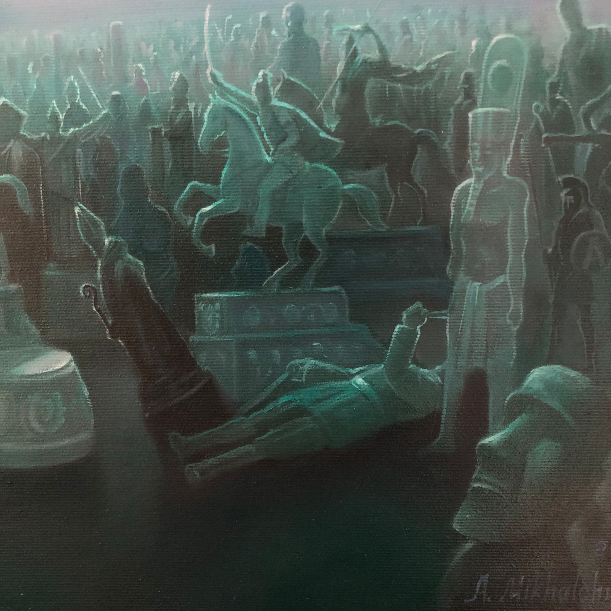 Valley of Vanity. Oil on canvas. Mankind has created idols for itself throughout history. Some go to their places, others come. Oblivion. Time will consume everyone. This is the original painting.