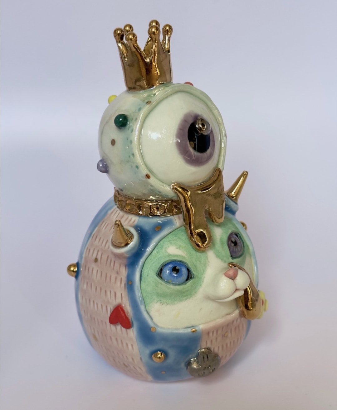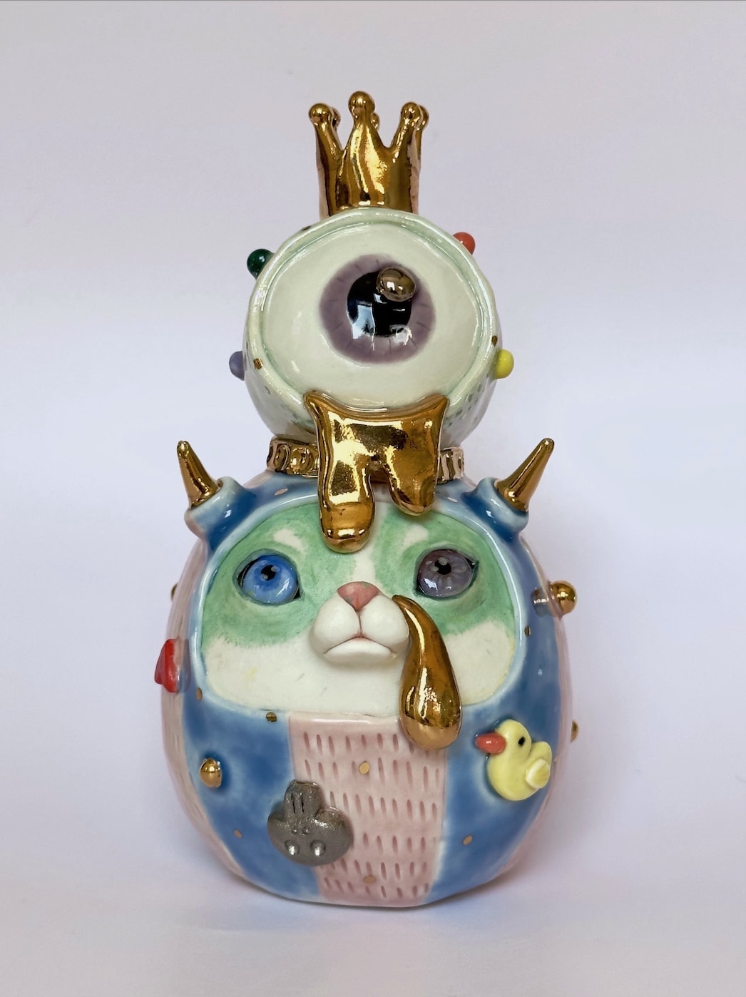 • porcelain, glaze, under glaze, copper carbonate, 22k gold luster, mop luster, resin