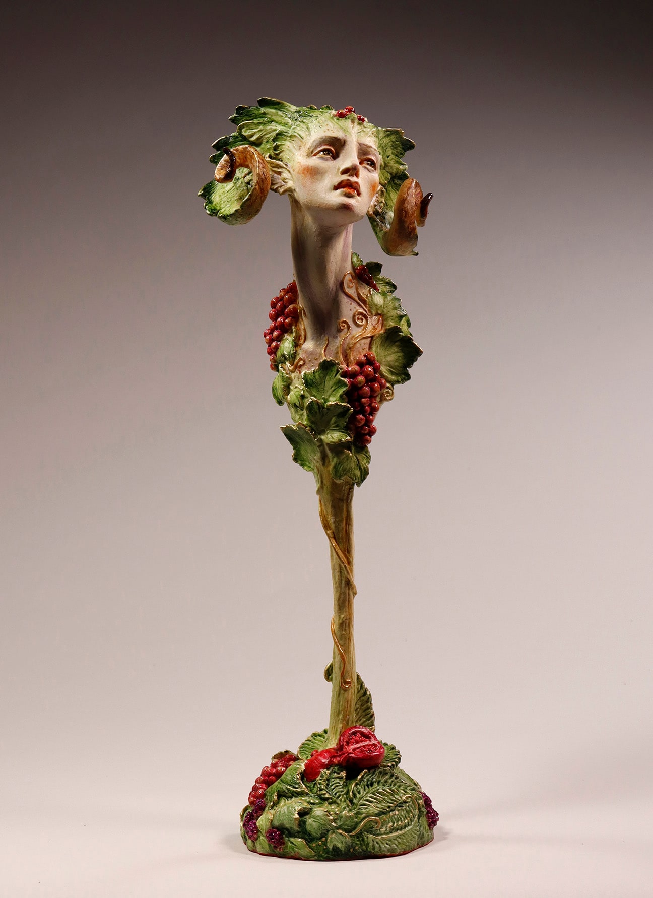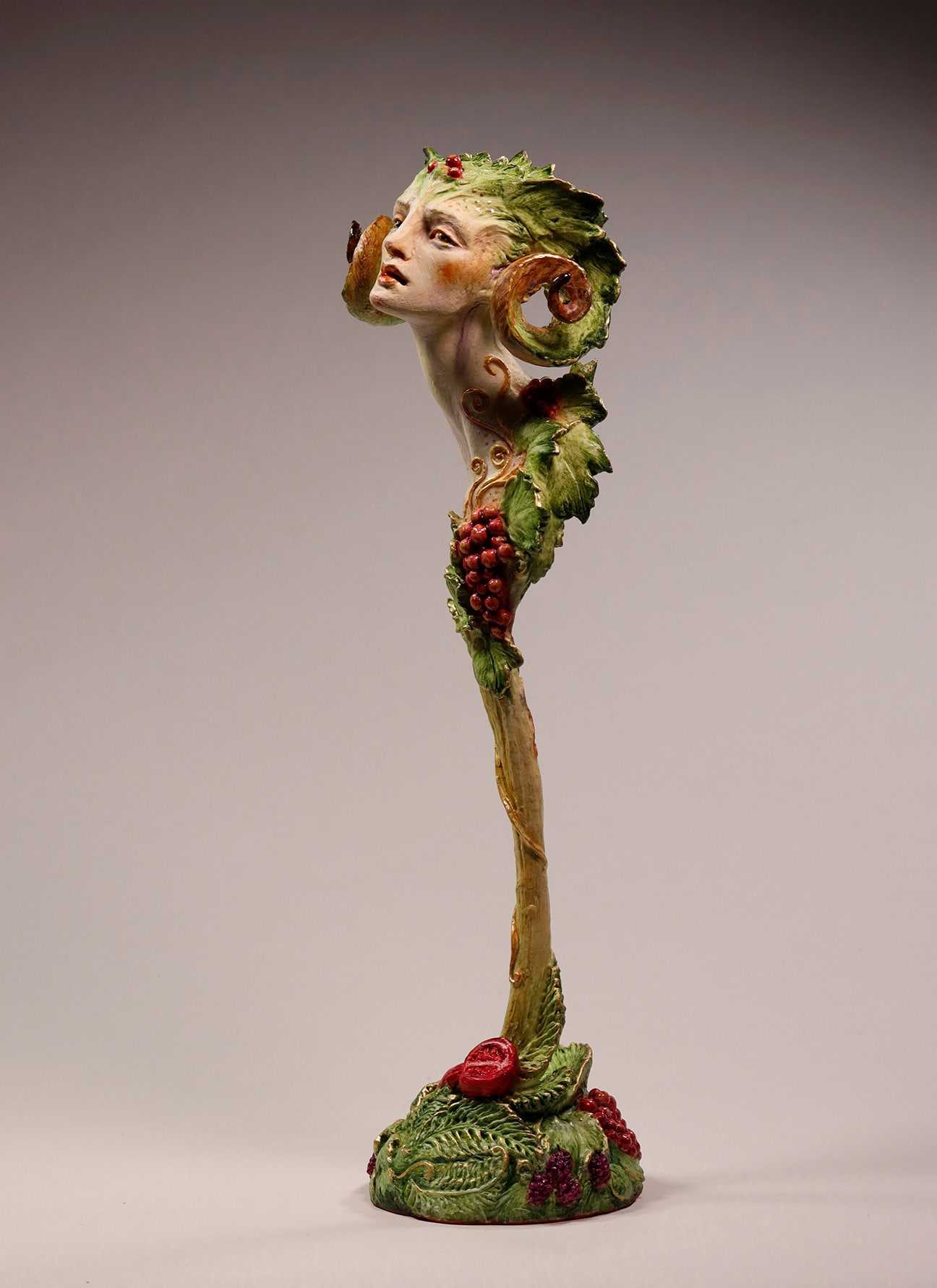 • Japanese air-dry clay, stainless steel and aluminum wire armatures, with acrylic paints and inks, mulberry papers.