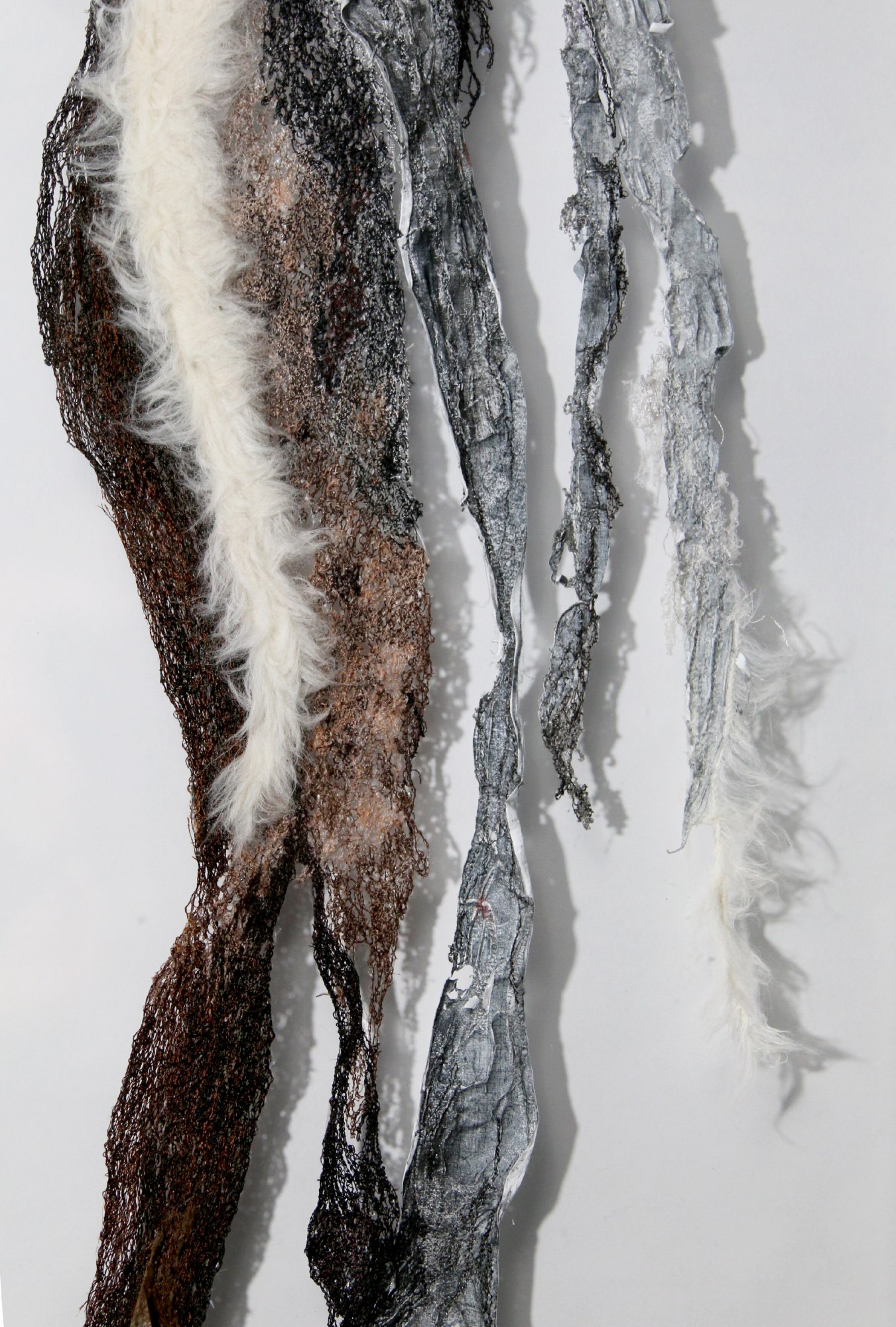 thread, Tyvek, archival watercolor, Keurig coffee filters, angora wool