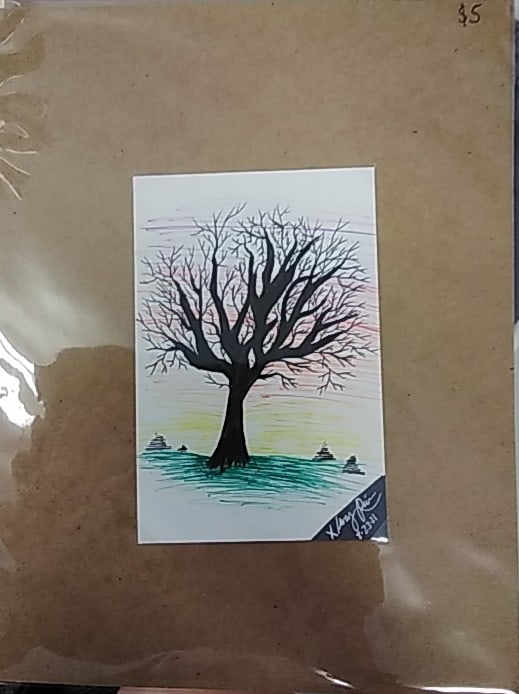 tree branches silhouette with colorful pen in the background