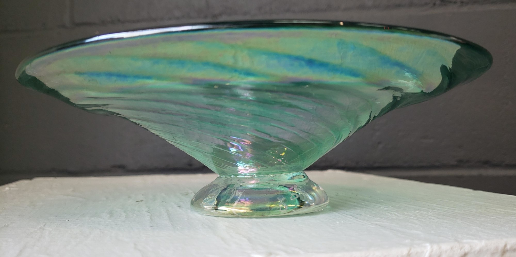 Spiral Green and Clear Glass Dish