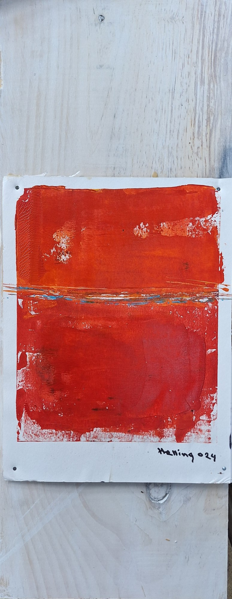 - mono print Acrylic on paper attached to white stained board