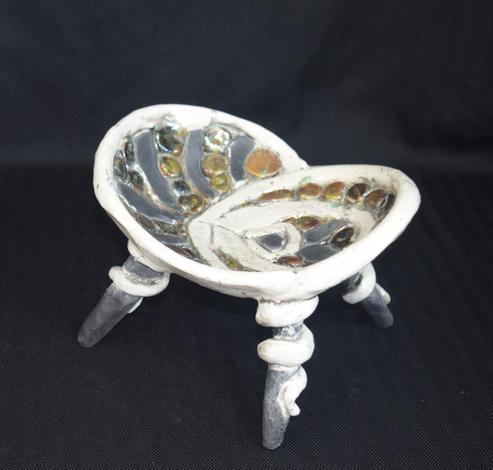 Raku bowl with spiral legs