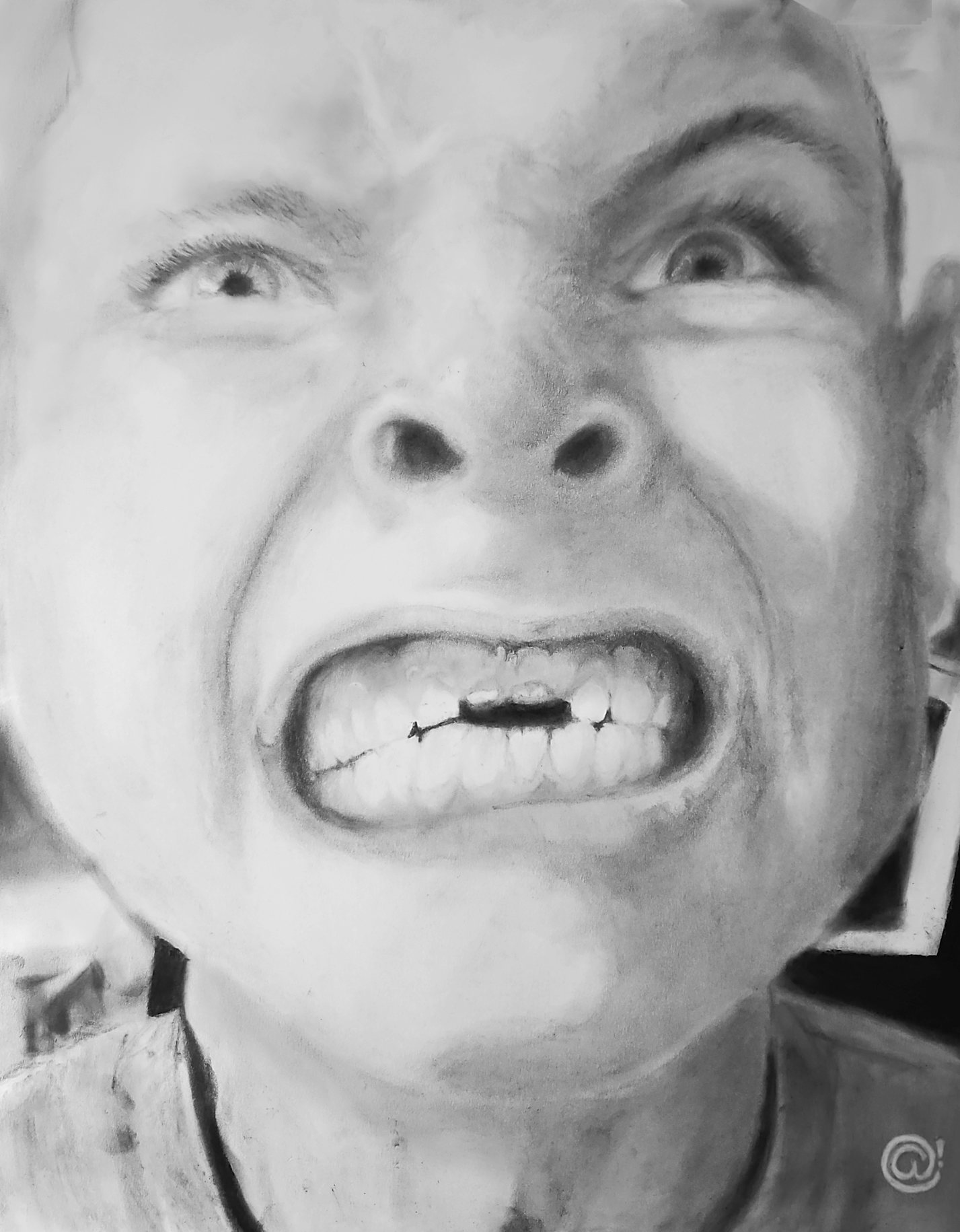 As an artist, I spend a lot of time finding reference material. I am always looking for those images that inspire or captivate me. I have a nephew who lost his two front teeth. I have kept this for years. I finally got to the point where I wanted to capture this on paper once and for all. The versatility of charcoal can be used to create a wide range of tones, from the deepest blacks to subtle grays, allowing artists to build up layers of tone and create delicate shading effects.