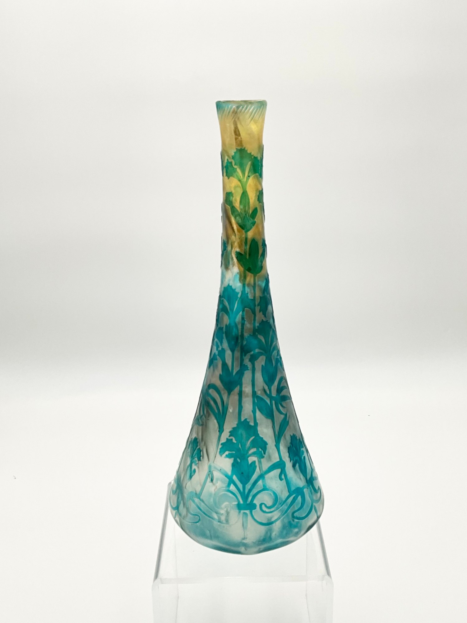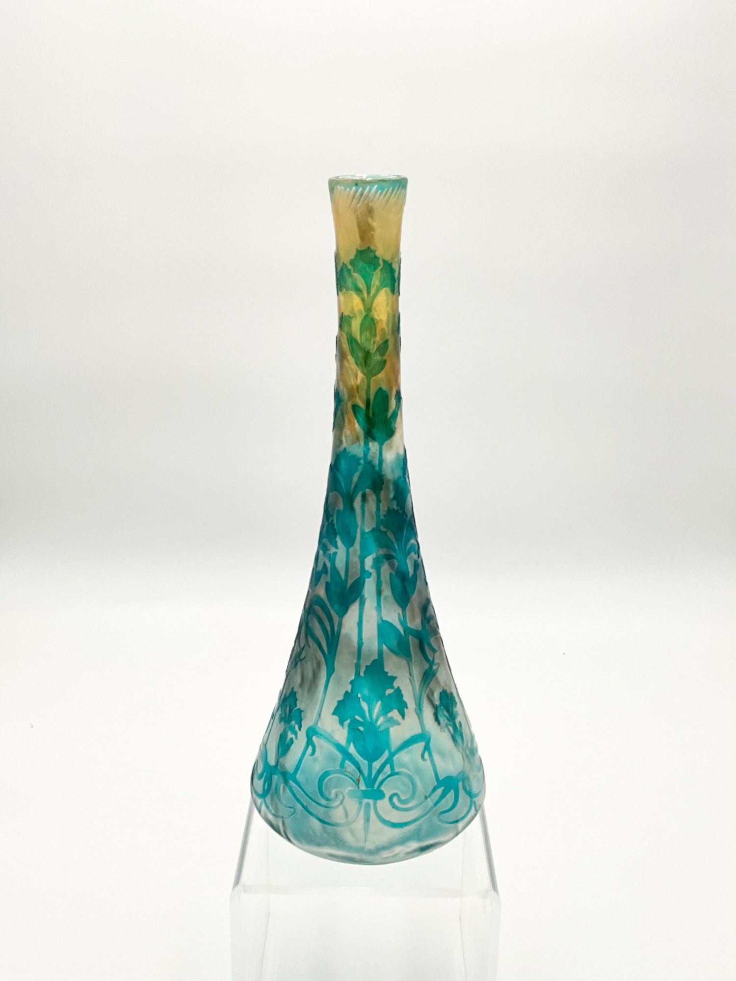 • Cristallerie de Pantin Large Cameo Art Glass Vase (Frosted Blue and Yellow), 1900/10's