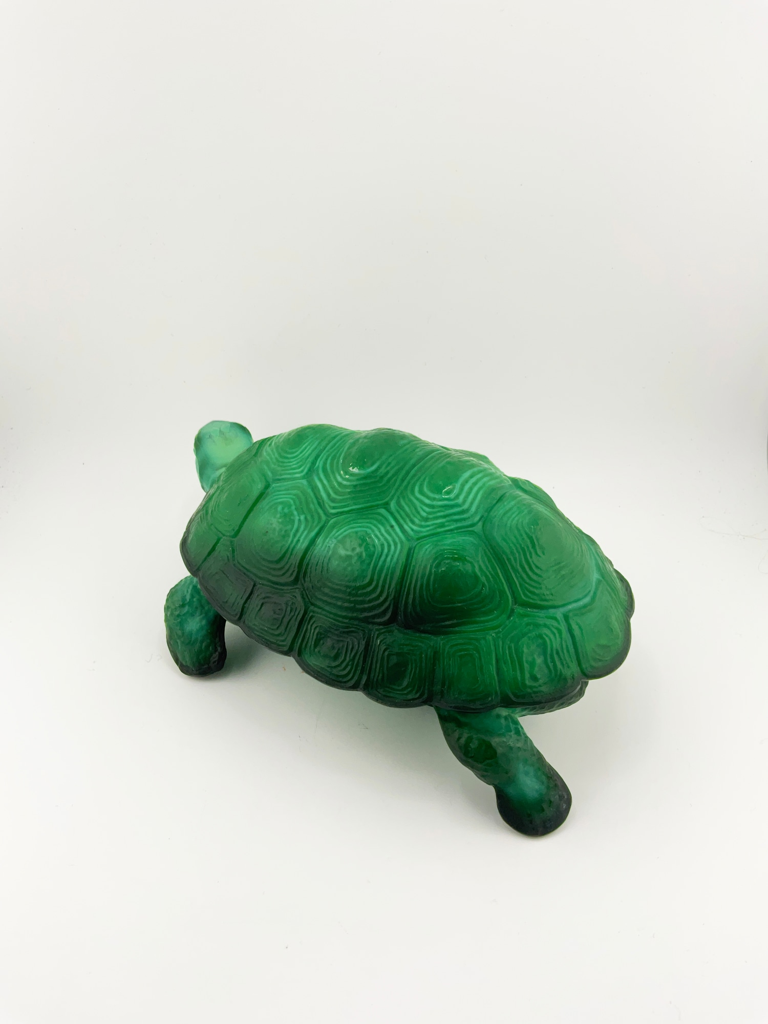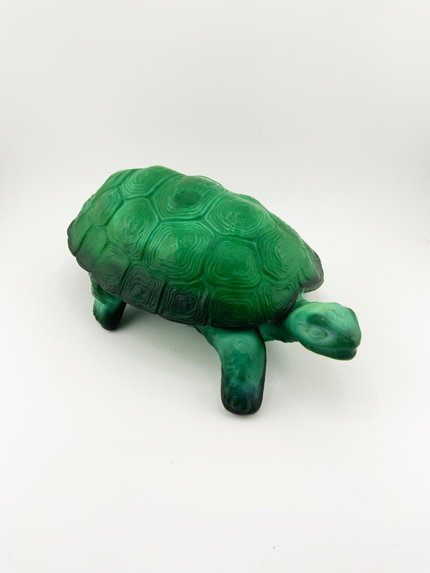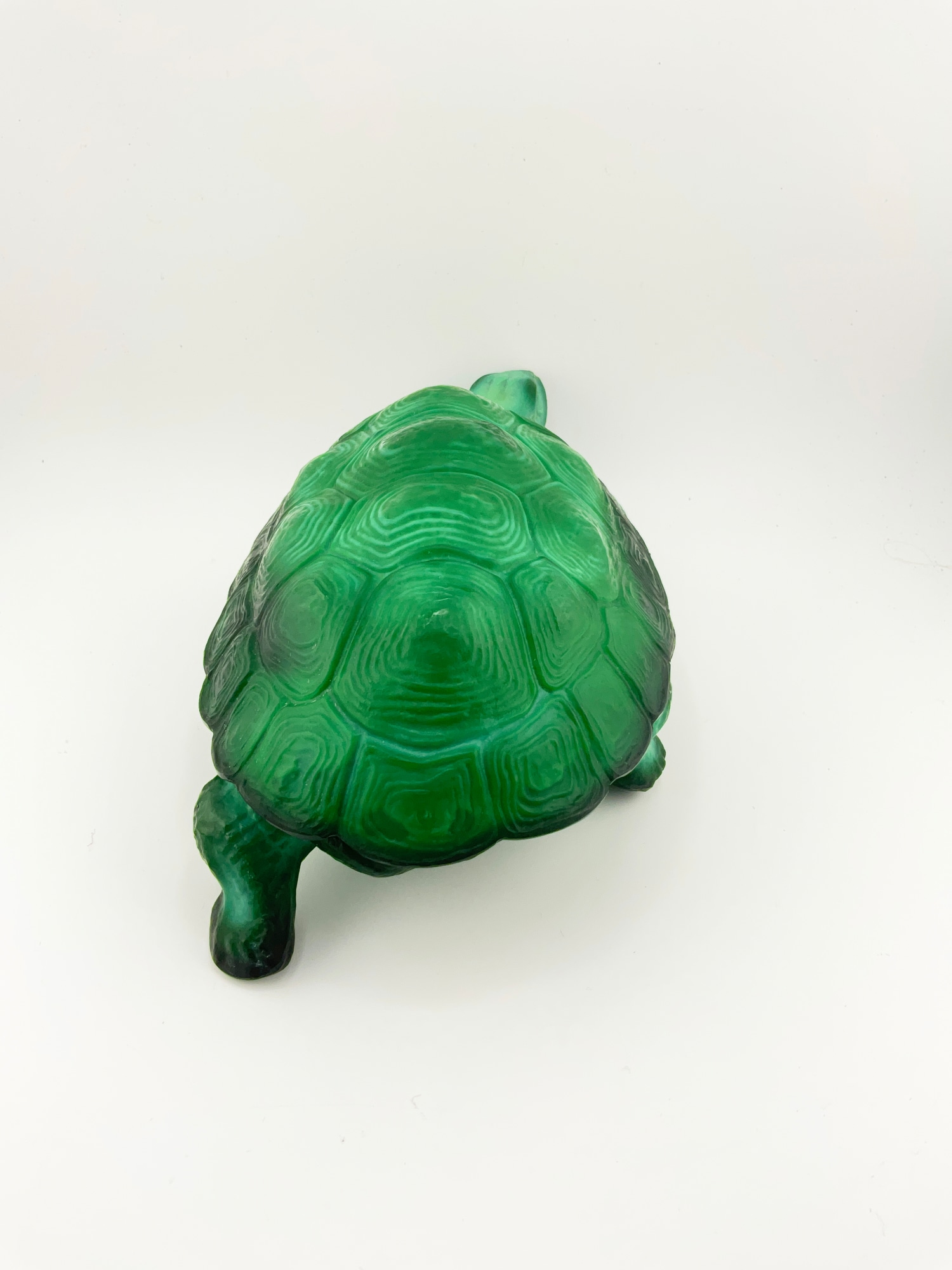 ANTIQUE MALACHITE GLASS TURTLE TRINKET BOX WITH REMOVABLE LID BY CZECH DESIGNER CURT SCHLEVOGT (1869-1959)