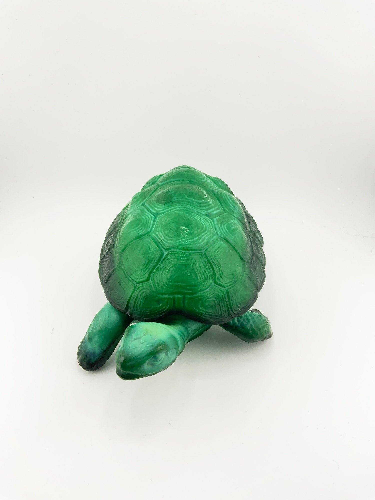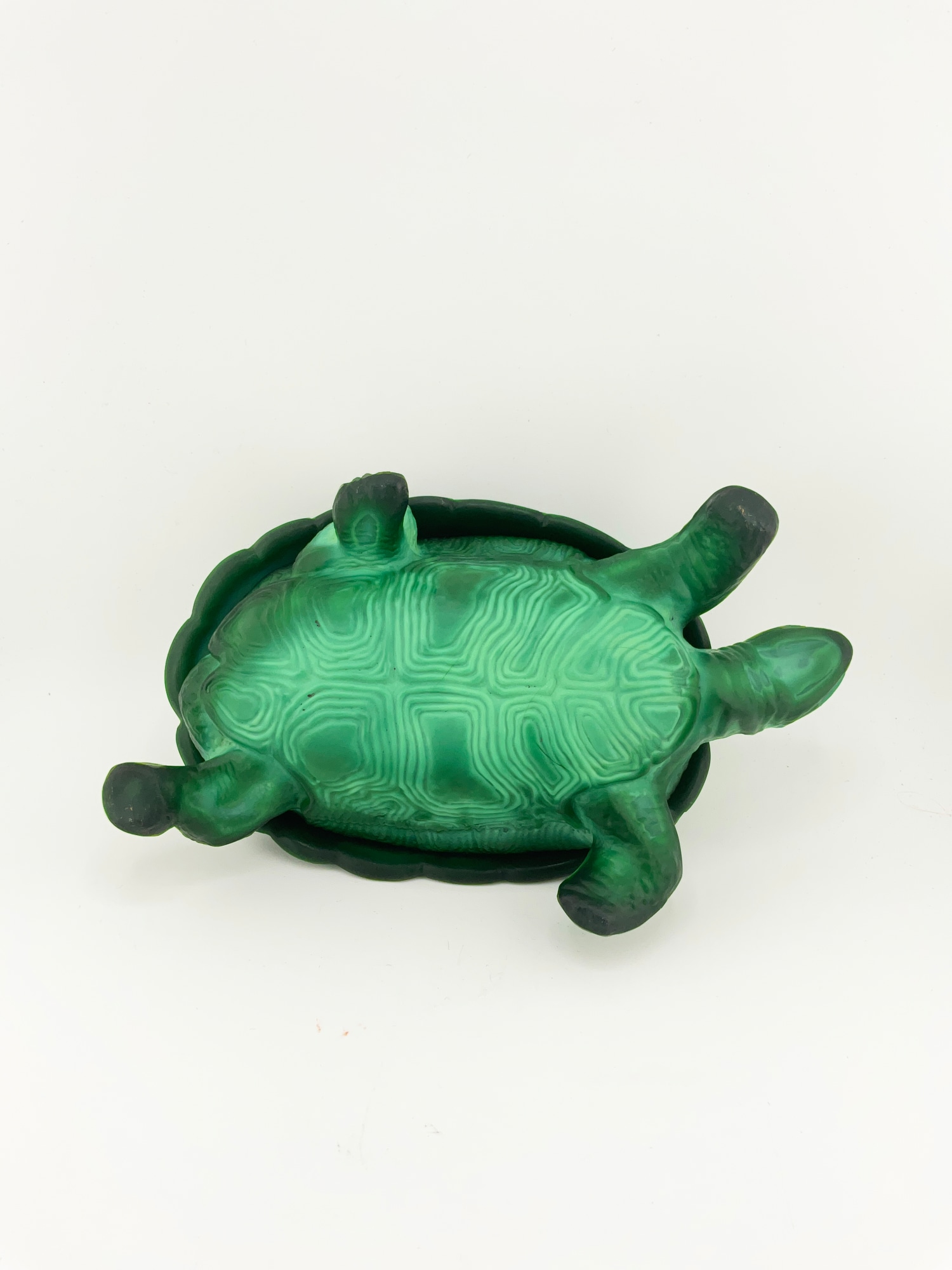 ANTIQUE MALACHITE GLASS TURTLE TRINKET BOX WITH REMOVABLE LID BY CZECH DESIGNER CURT SCHLEVOGT (1869-1959)
