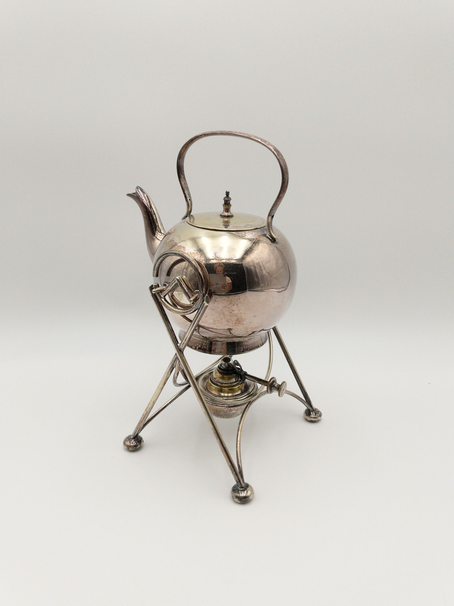 ORIGINAL ANTIQUE EPNS SILVER PLATE TEA POT SPIRIT KETTLE W/ BURNER STAND
