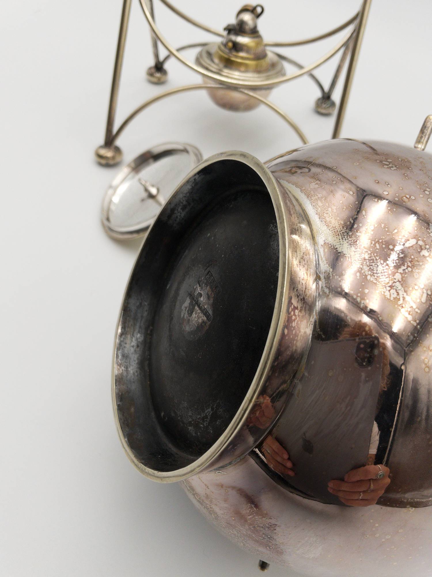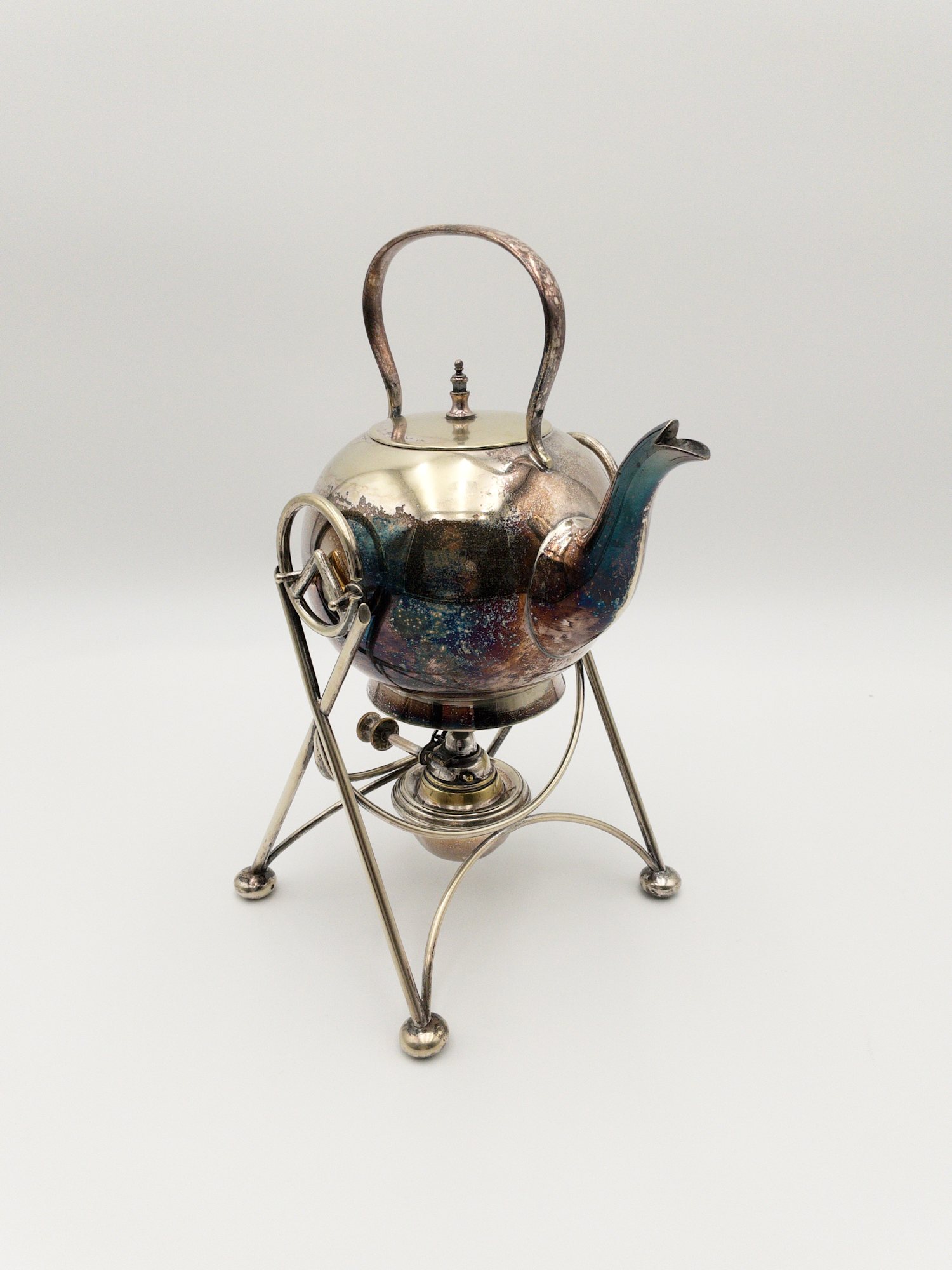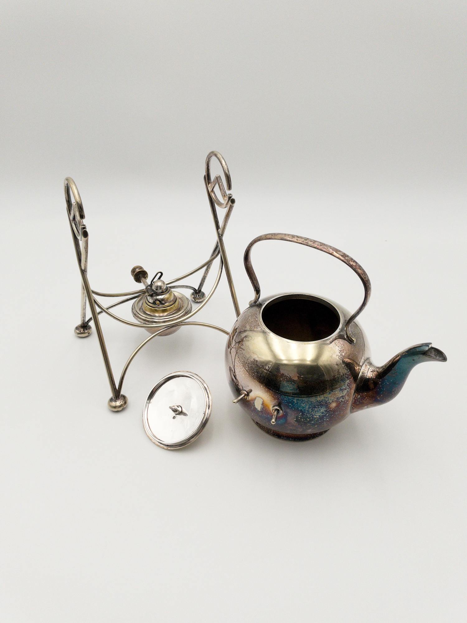 ORIGINAL ANTIQUE EPNS SILVER PLATE TEA POT SPIRIT KETTLE W/ BURNER STAND