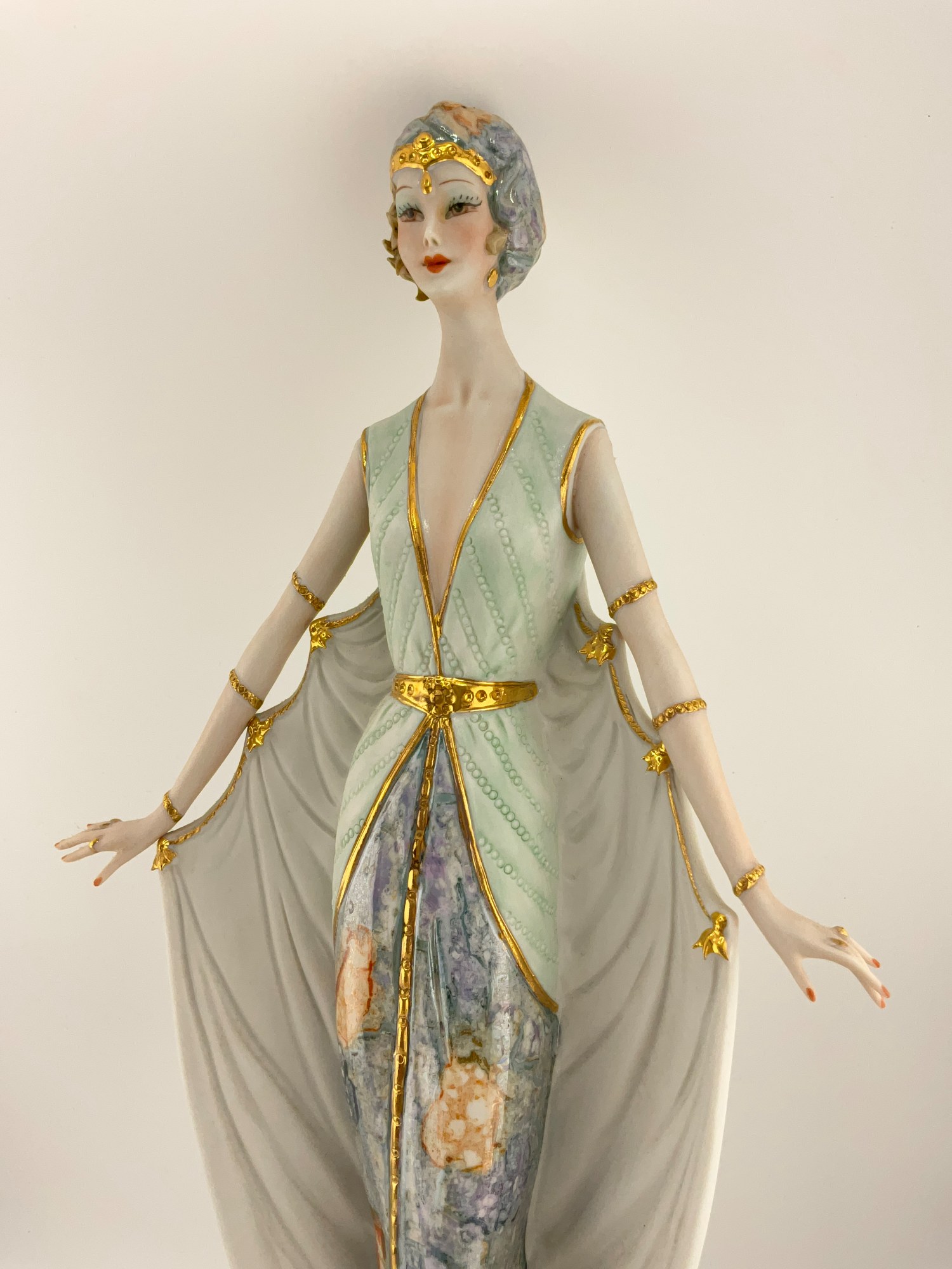RARE ORIGINAL VITTORIO SABADIN ITALIAN CAPODIMONTE PORCELAIN FIGURINE [ART DECO WOMAN ], C. 1988