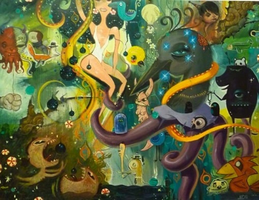 The artist collaboration piece from the Baby Tattooville '08 event - including works by Amy Sol, Ana Bagayan, Bob Dob, Brandi Milne, Dave Cooper, Daniel Peacock, Glenn Barr, Gris Grimley, Jeff Soto, Joe Ledbetter, Lola, Luke Chueh, Michael Whelan, Nathan Spoor, Ragnar & Shag!