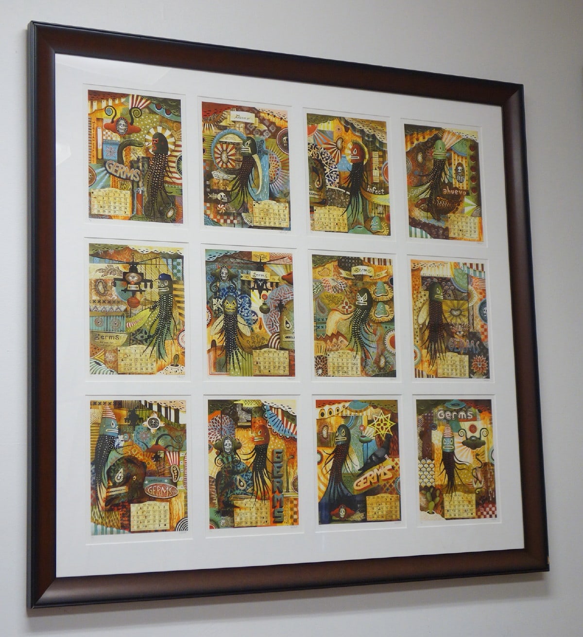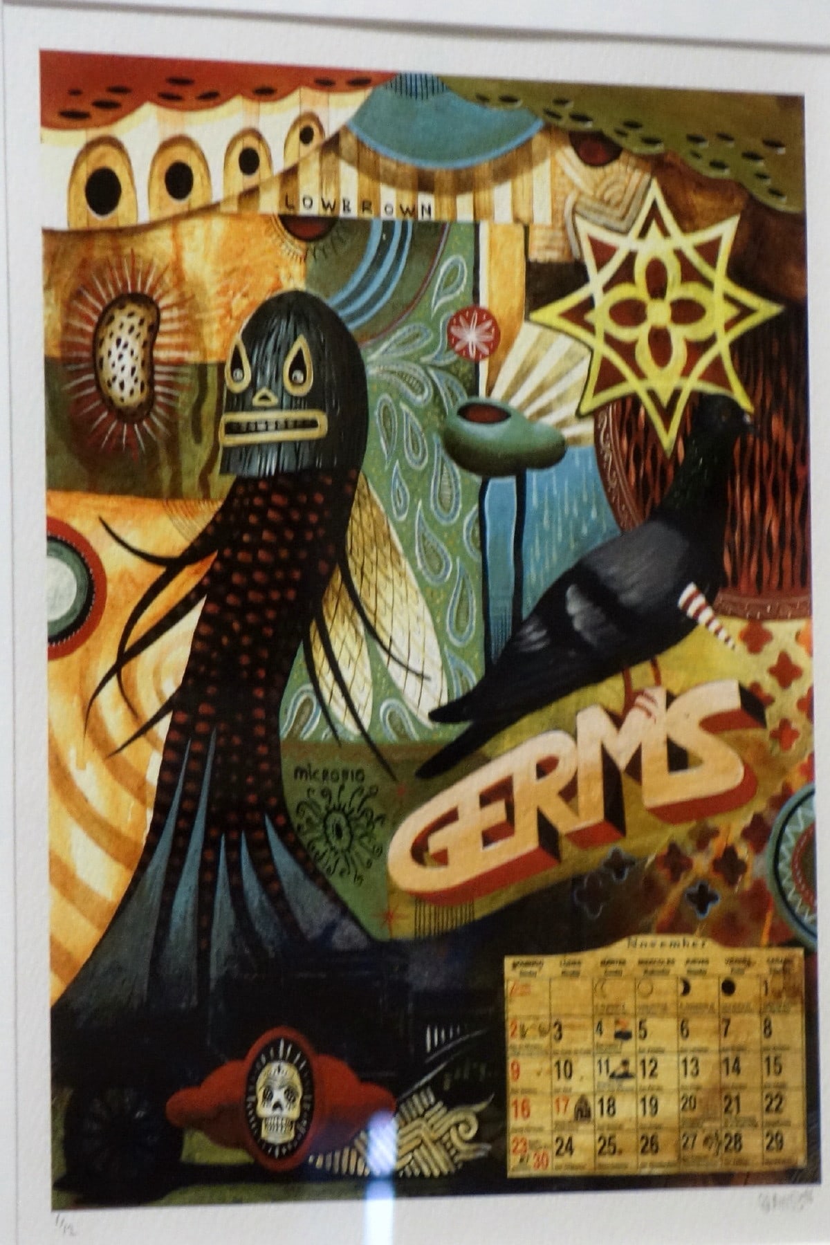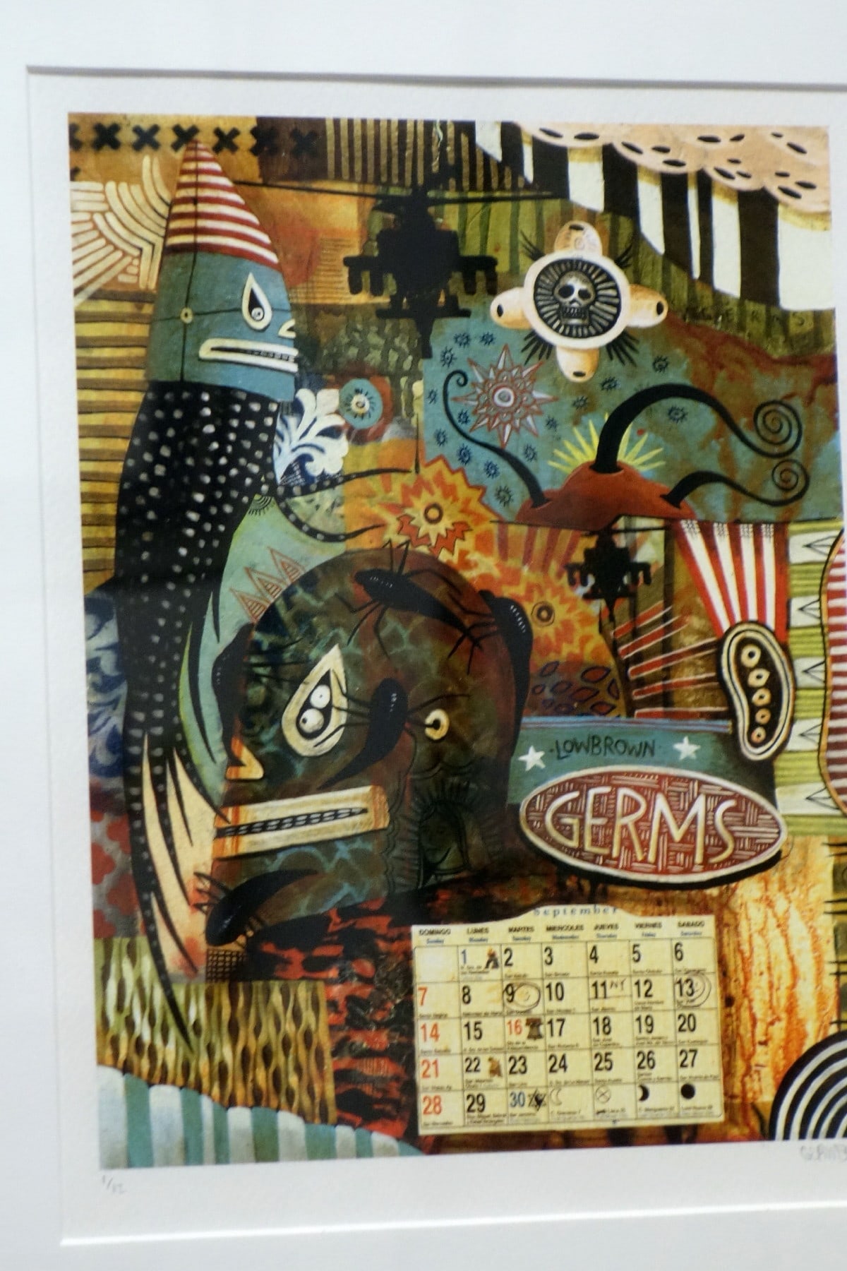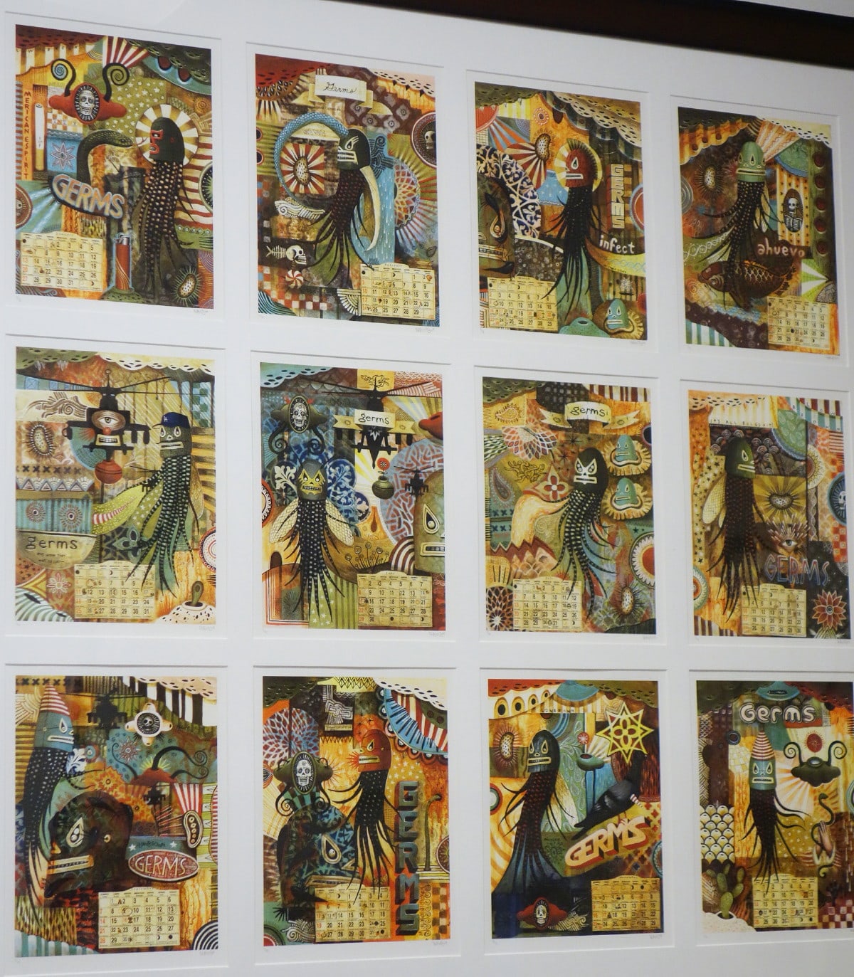 South Los Angeles native Jaime Zacarias aka GERMS is seemingly infected with an innate ability to channel the spirits of our surrealist predecessors, slapping our eyeballs with his grotesque yet amusing iconography and ameoba like characters while simultaneously referencing post-Chicano culture and imagery. He is known for cleverly stylized Luchador masks given life by their protruding tentacles, surrounded by floating amoebas that playfully flirt with their viewers' imaginations.