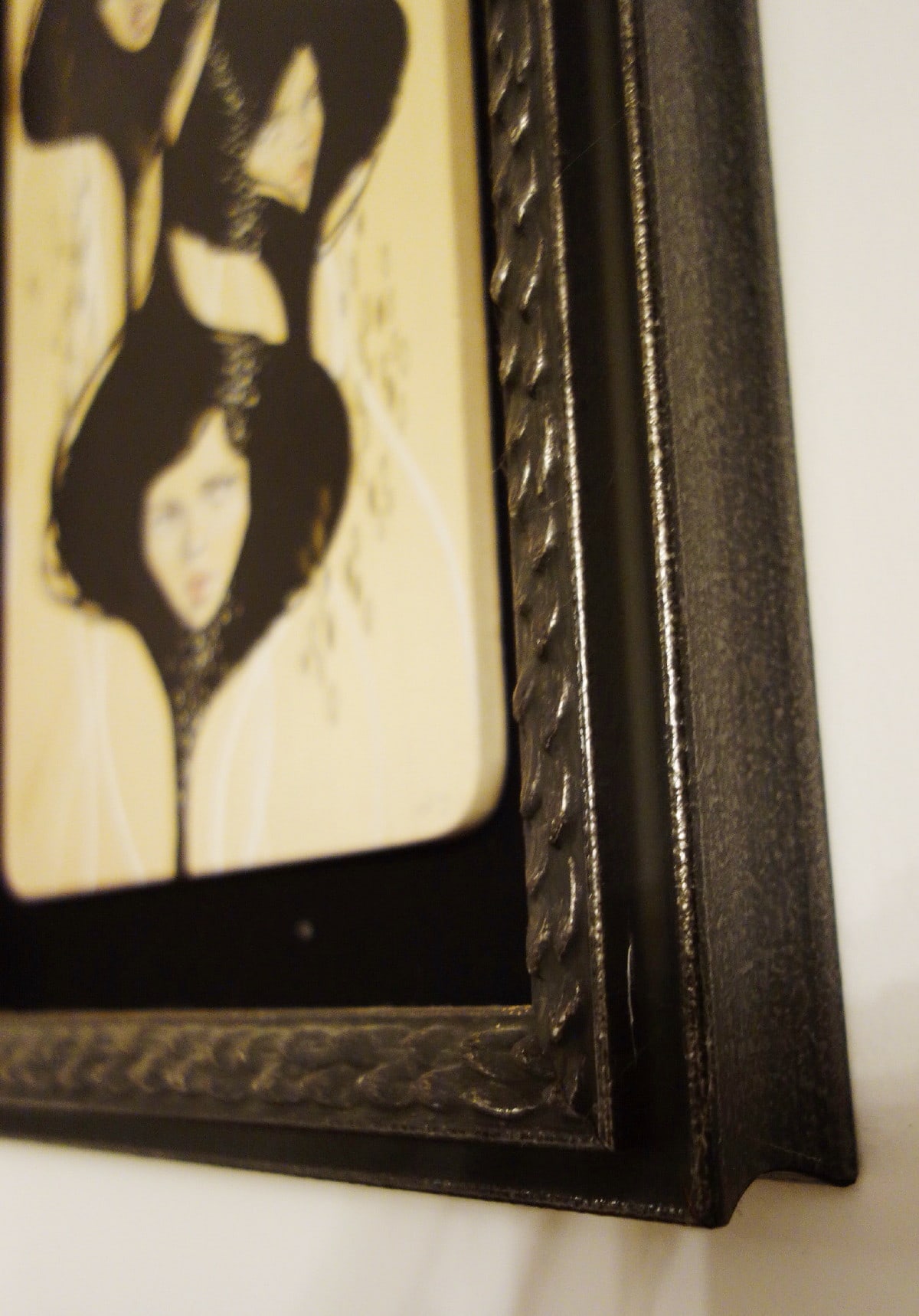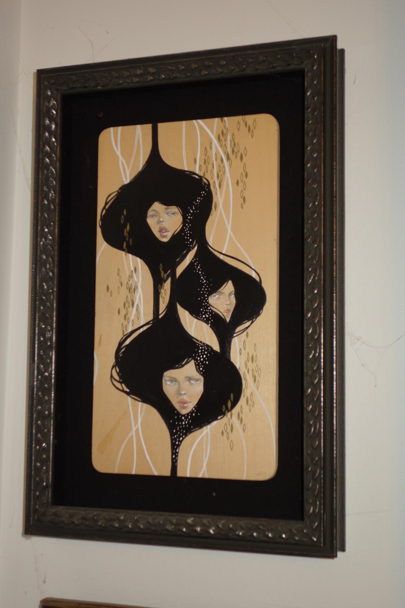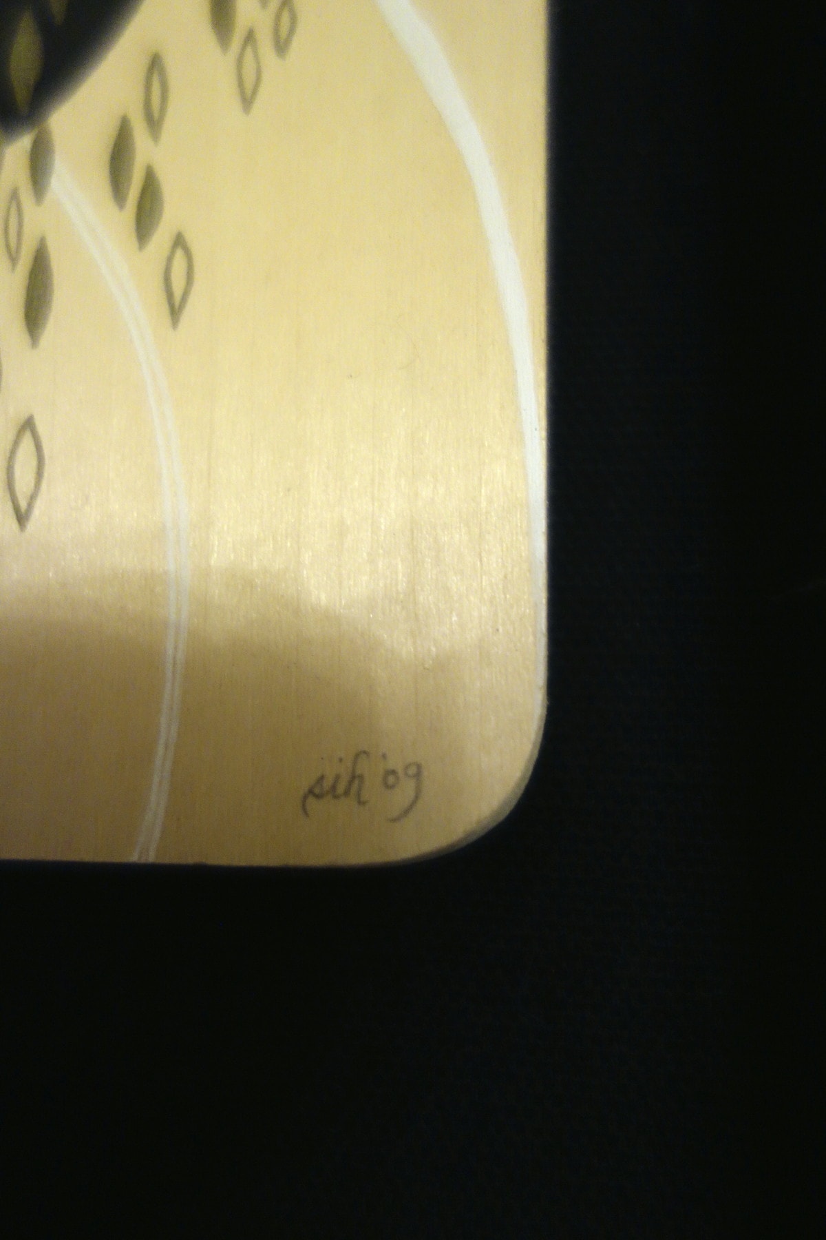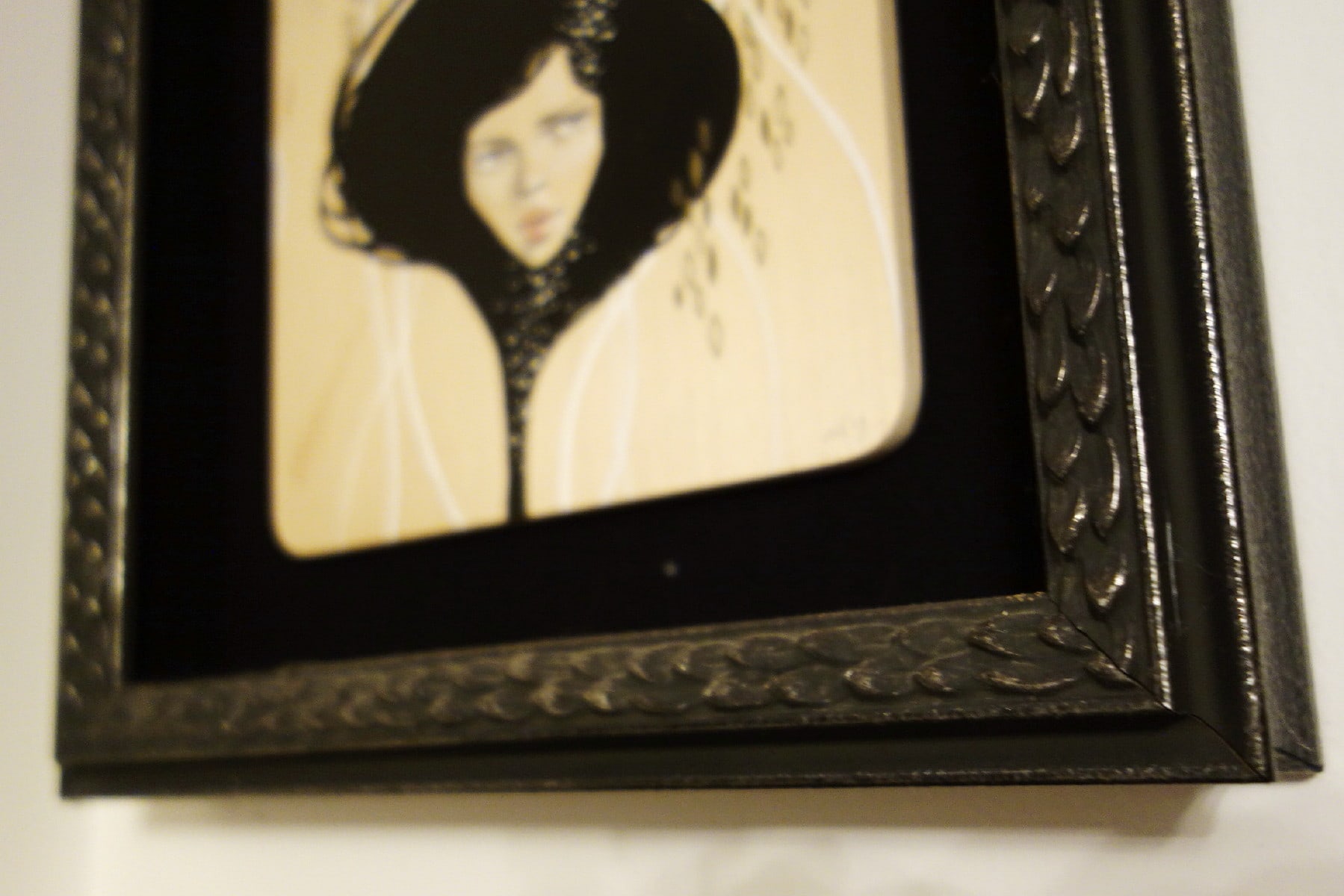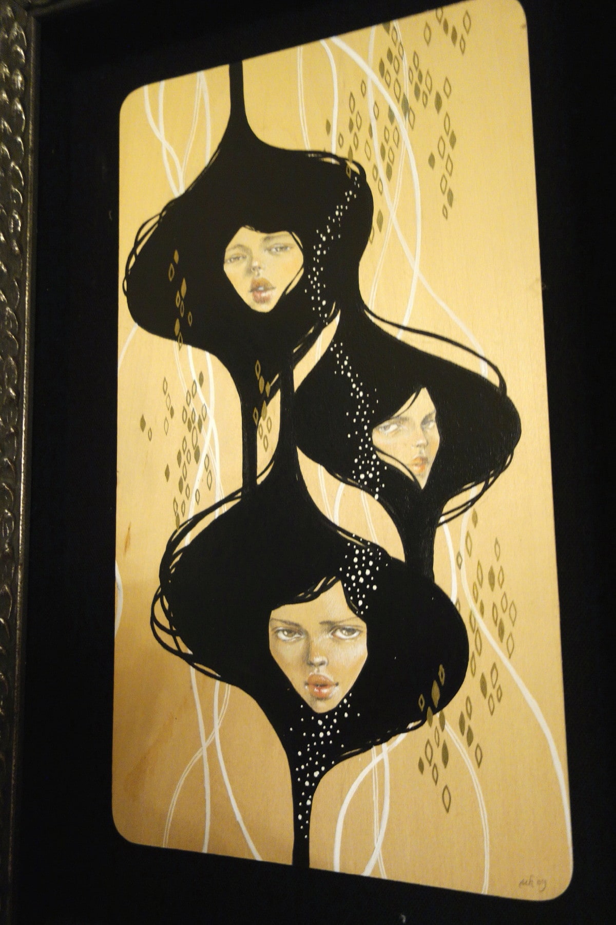 - Graphite, acrylic, metallic pen & watercolor on wood