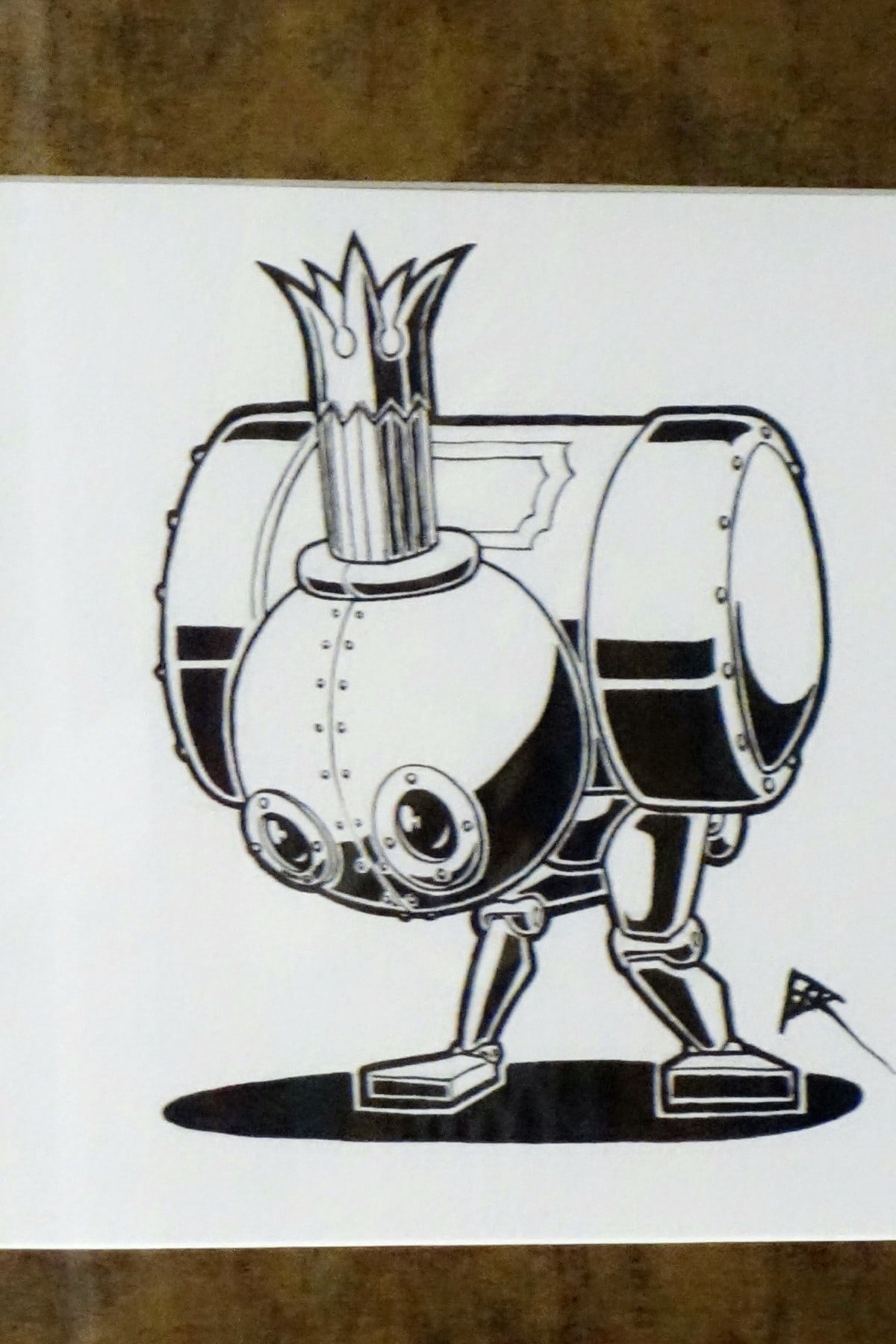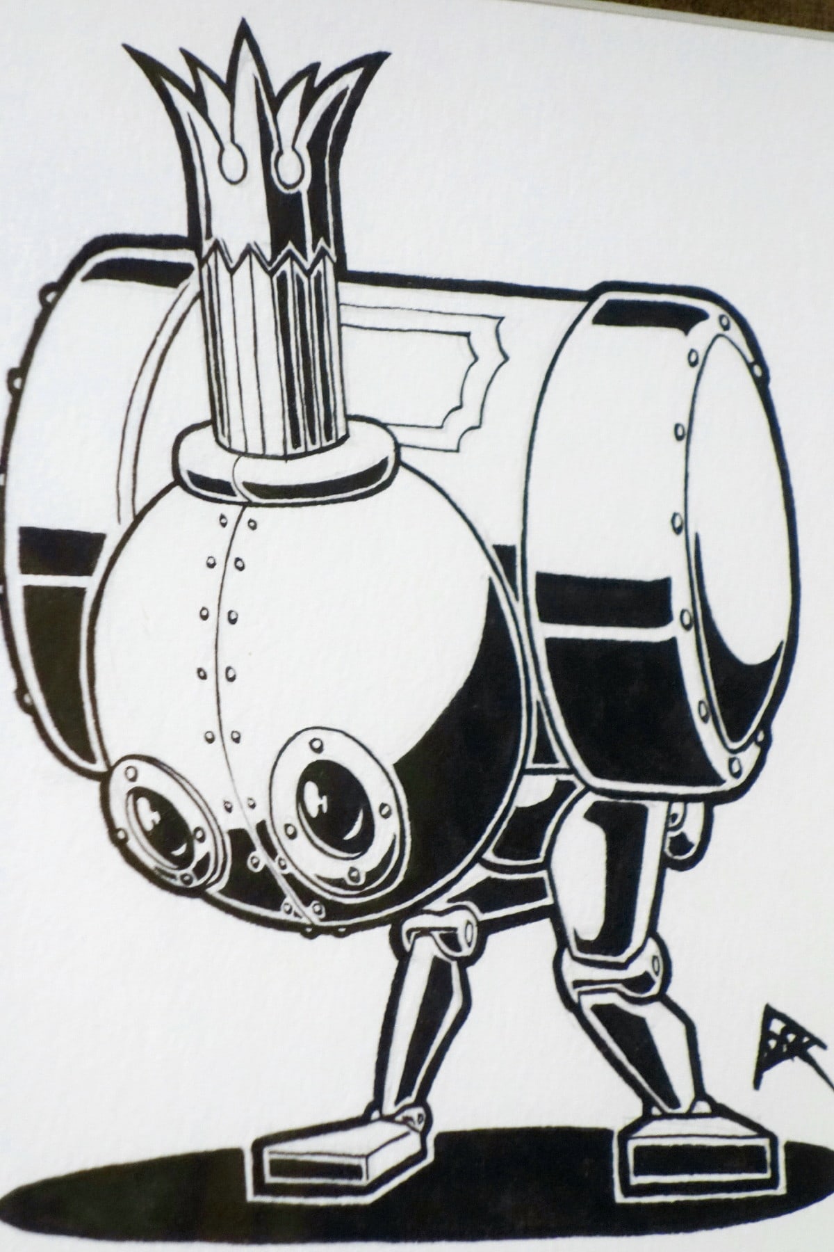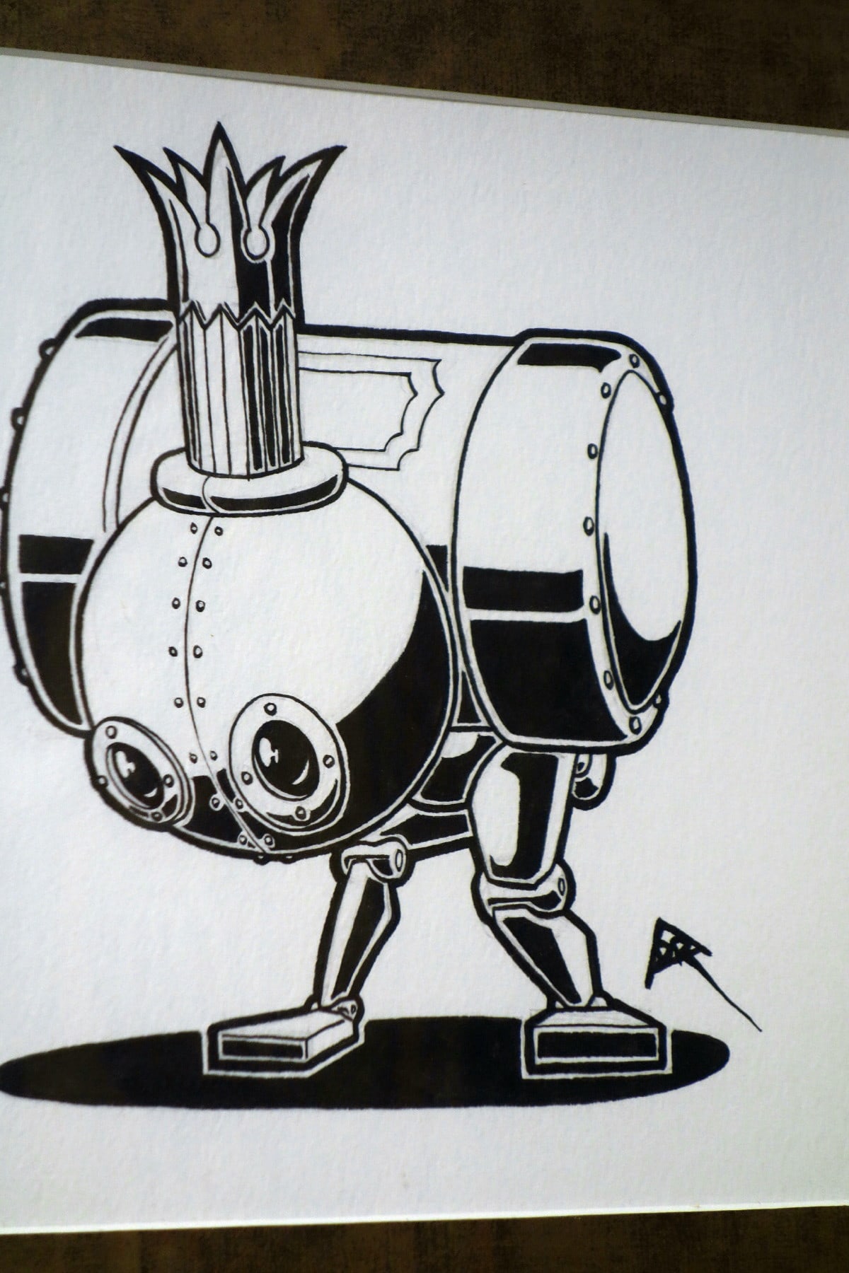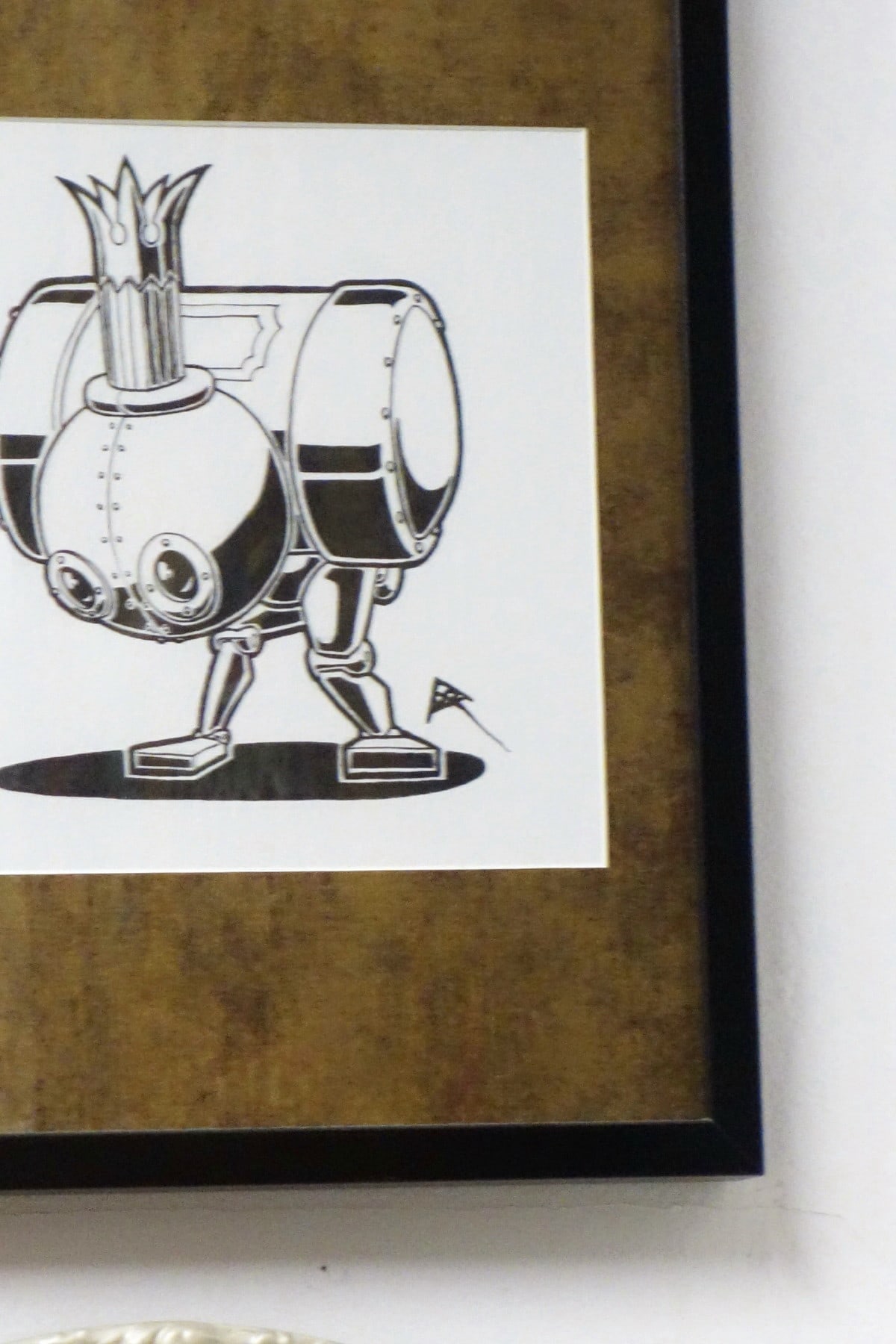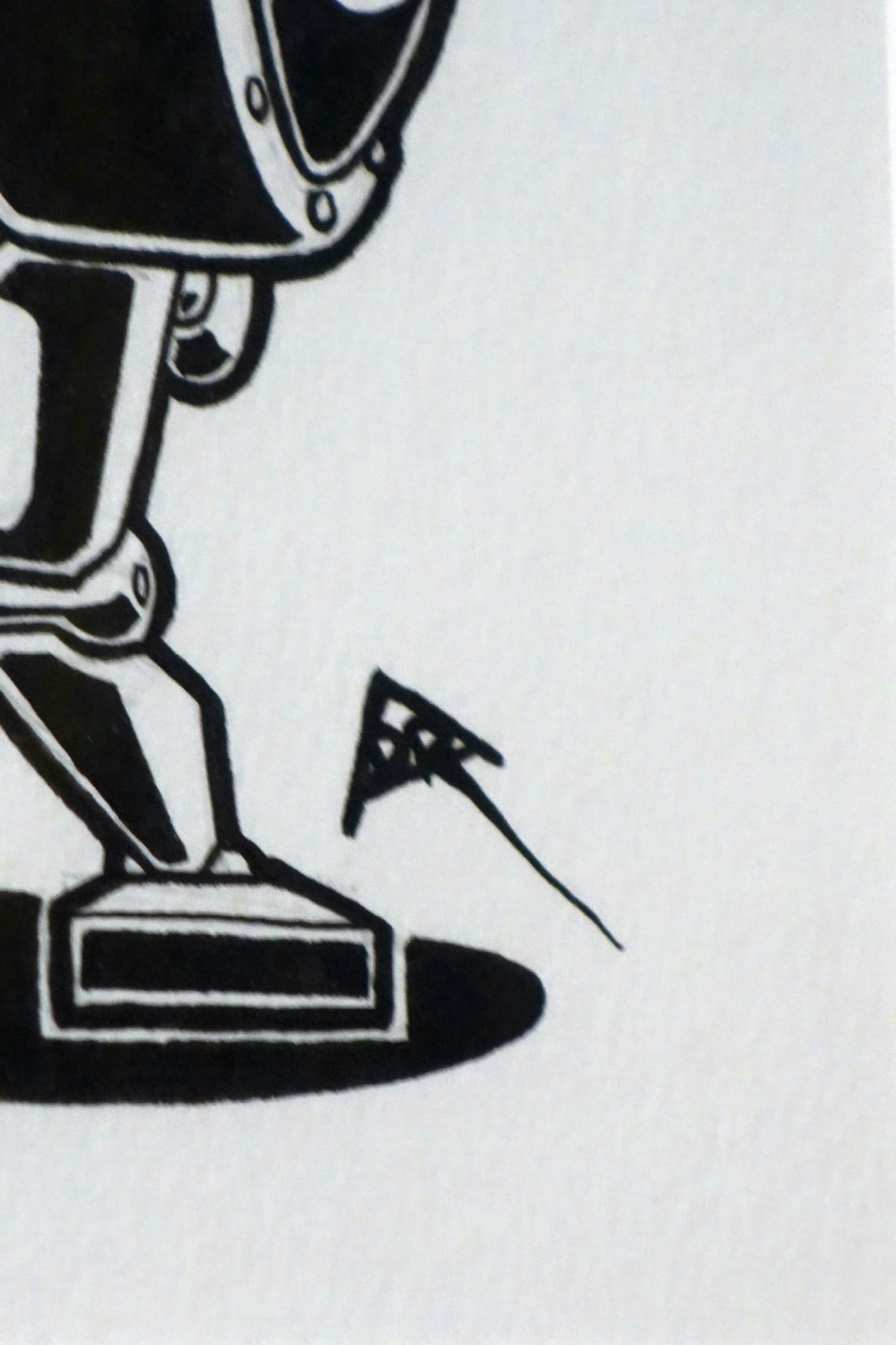 • Indian ink on acid free heavy watercolour paper, black wood frame, burnished metal bronze-plated matting