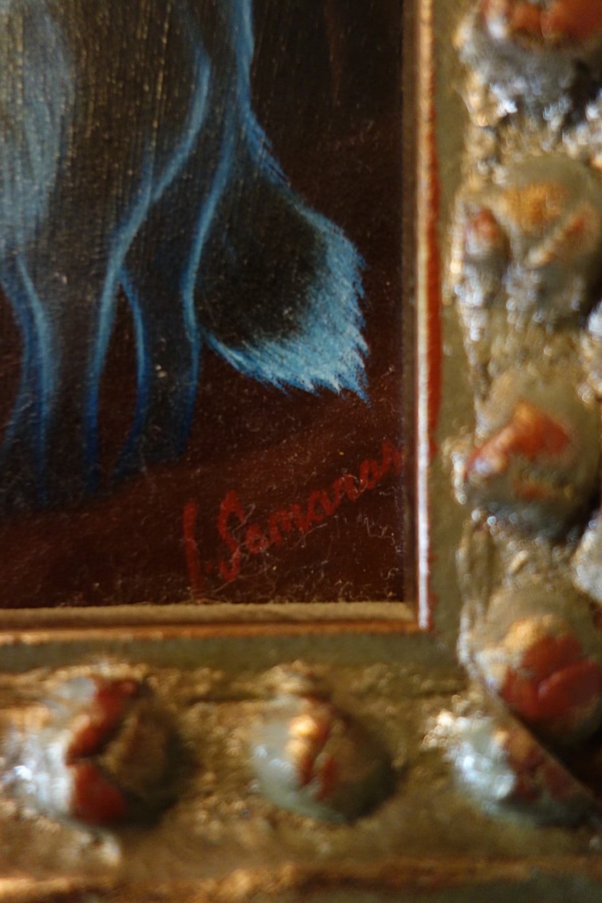 Known for lush and meticulously painted riffs on Old Masters that feature pop culture icons of the past, Isabel Samaras’ ribald images are woven with references to classic horror movies, ancient mythologies, cherished TV characters, tribal societies, and childhood fairy tales. Magical realism and the forbidden fantasies of fabled characters frolic in a world where elusive desires become reality, re-imagining ill-fated journeys that turn into enchanted honeymoons. A common thread that runs through much of Samaras’ work like a red string tied to her heart is that of love: maternal affection, romantic devotion, illicit enchantments, tender yearnings, unrequited passion, and the idea that everyone, even monsters or disembodied hands can find someone to love them. Her painted narratives, classical in technique and pop in content, often revolve around issues of making things end the way we wish they would. Exploring “What if?” and “Why not?” she brings human desires and foibles to fictional characters, studying the human condition through the eyes of popular culture by jamming old and new together in the visual equivalent of a mash-up song.