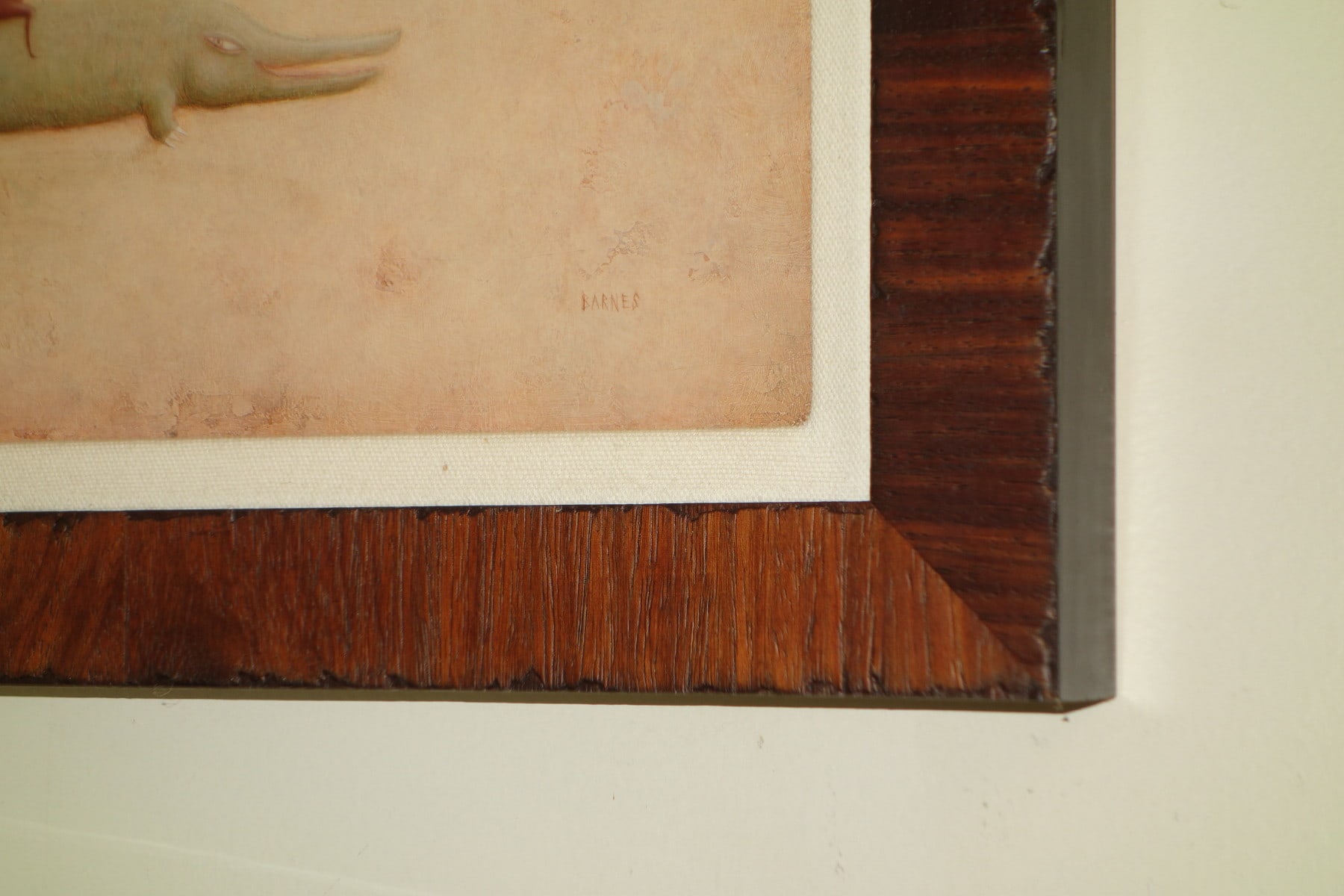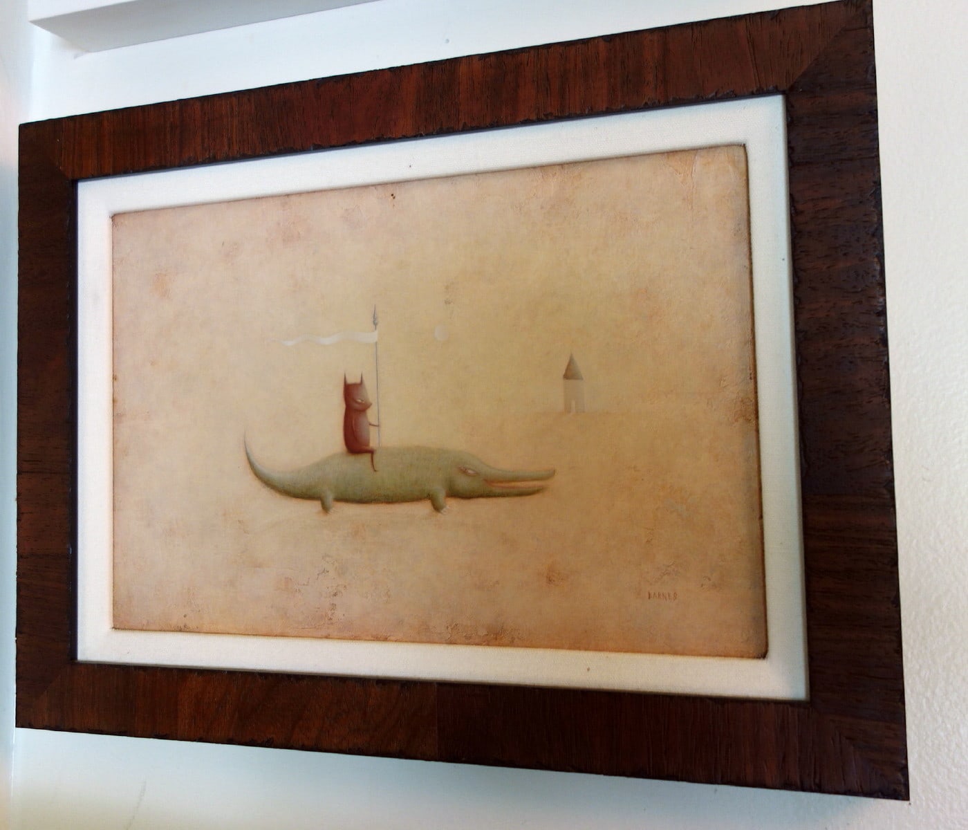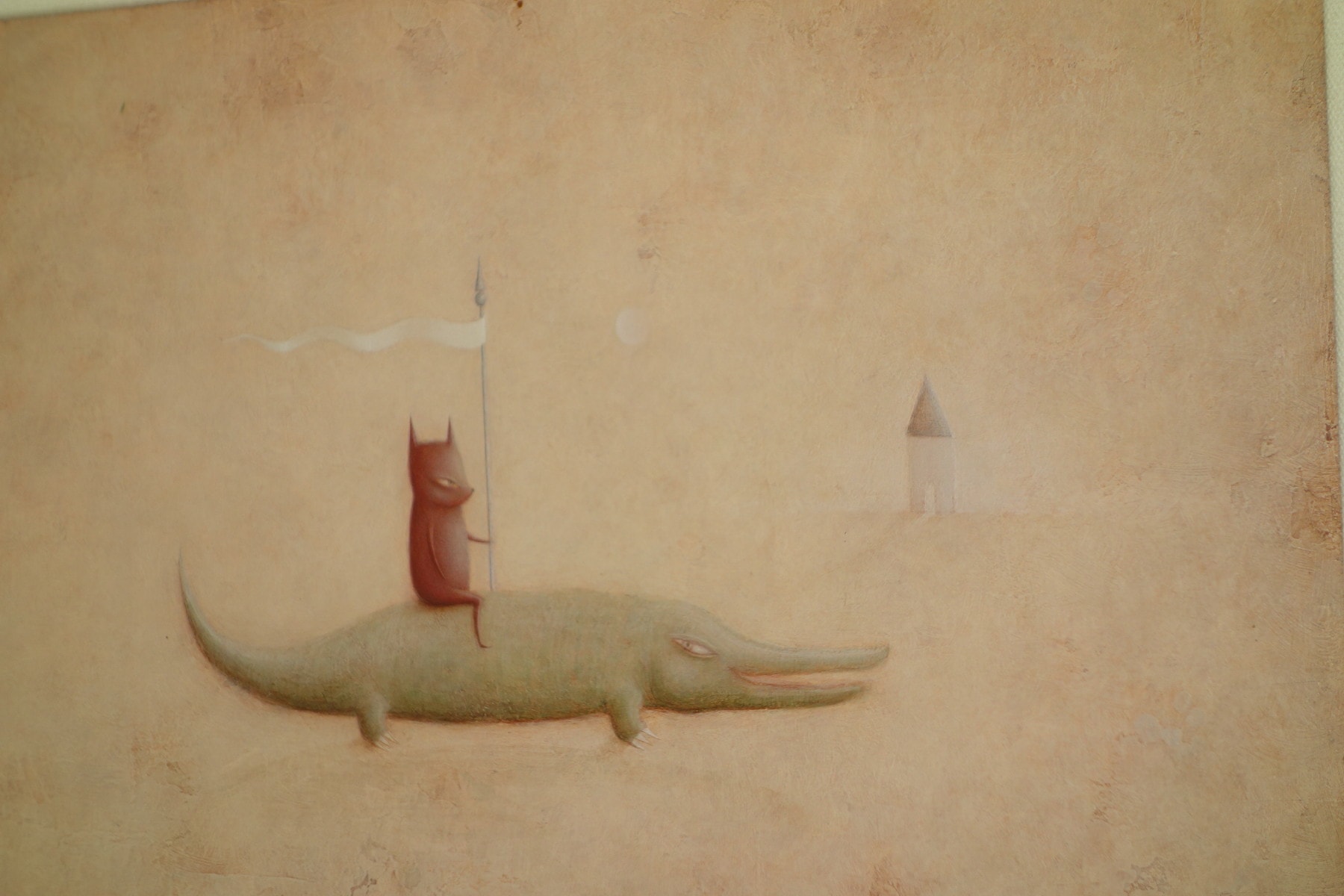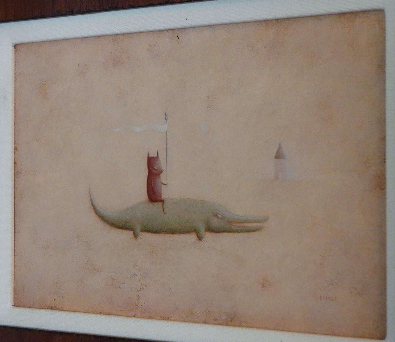 The closeness to nature from the slight isolation of growing up in the rural North of Scotland, along with my fascination of its ancient traditions rich in folklore and legend, no doubt forms the basis of my work. Paul’s beautifully stylized anthropomorphic characters are metaphors for elements of the human condition and they weave gentle narratives infused with myth and magic. Forever fascinated with the past, Barnes paints with a soft and subtle colour palette on a textured support, which lends his work the time worn appearance of ancient relics. It is through his collection of masterful visual cues that Paul invites the viewer to revisit their childhood naivety and unlock the innocent imagination which accompanies it.