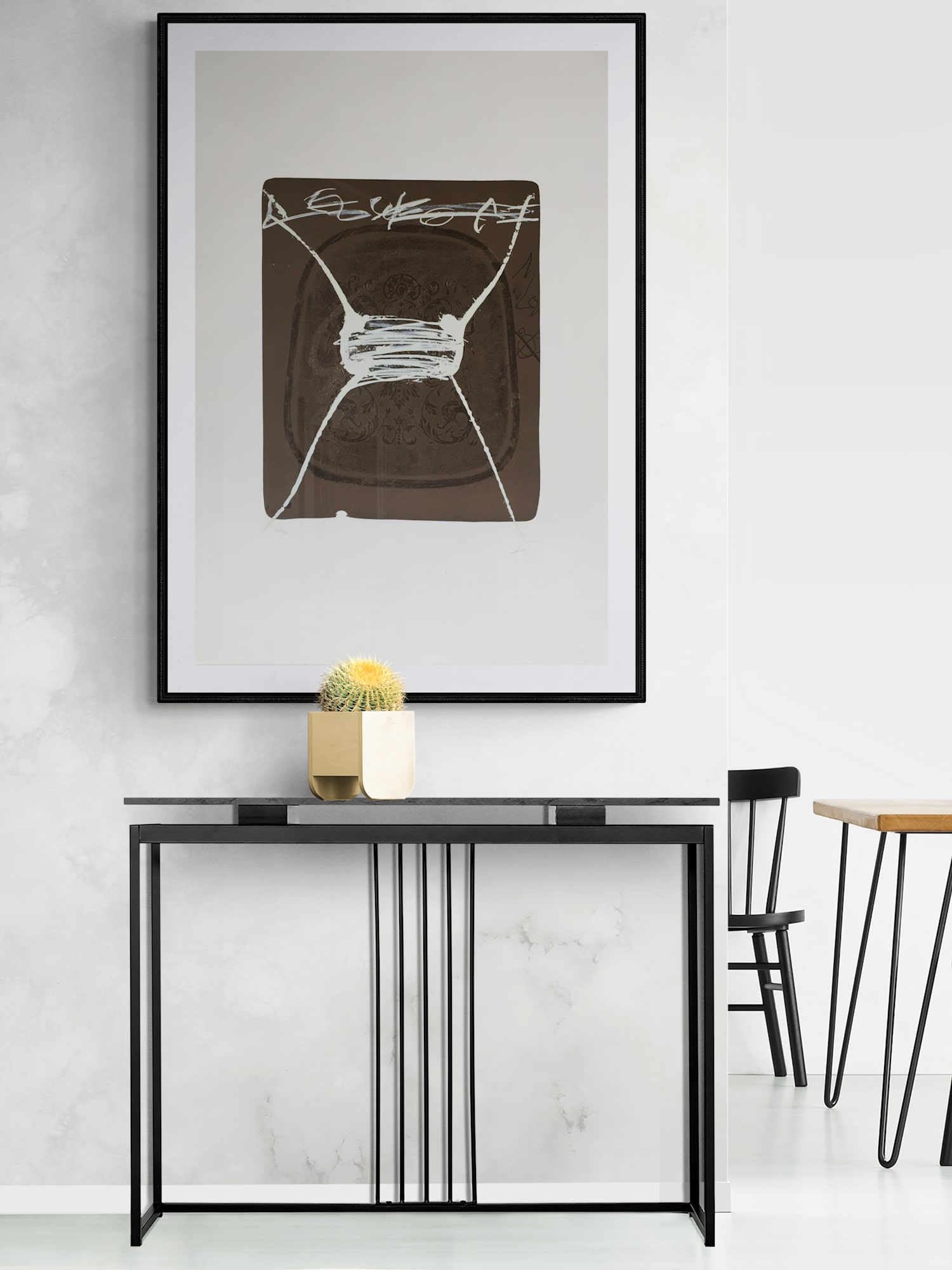 Barriere Marron (Ejemplar EA - Marco plateado) by Antoni Tàpies
