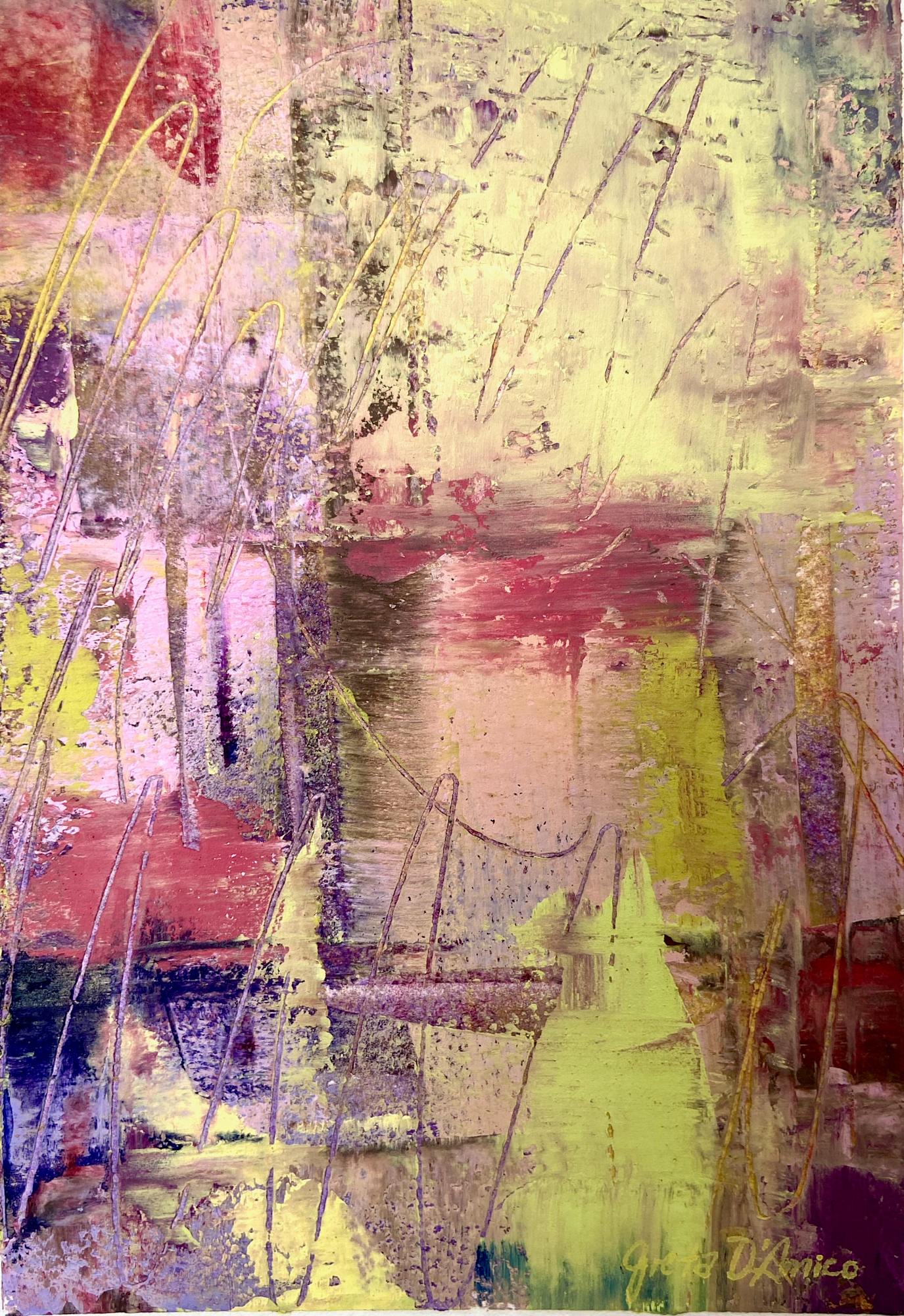 This piece is part of The Calling Series, a collection of four abstract works exploring communication between seen and unseen realms. Through layered color and movement, the series traces a rhythm of invitation, response, and resonance—a conversation expressed through light, texture, and form. Response reflects the answering vibration that meets the call.