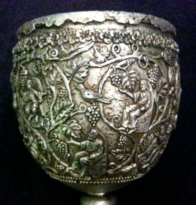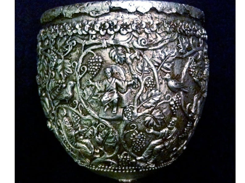 Reproduction of the Antioch Chalice, which was declared the Holy Grail when found in Syria in 1910 .