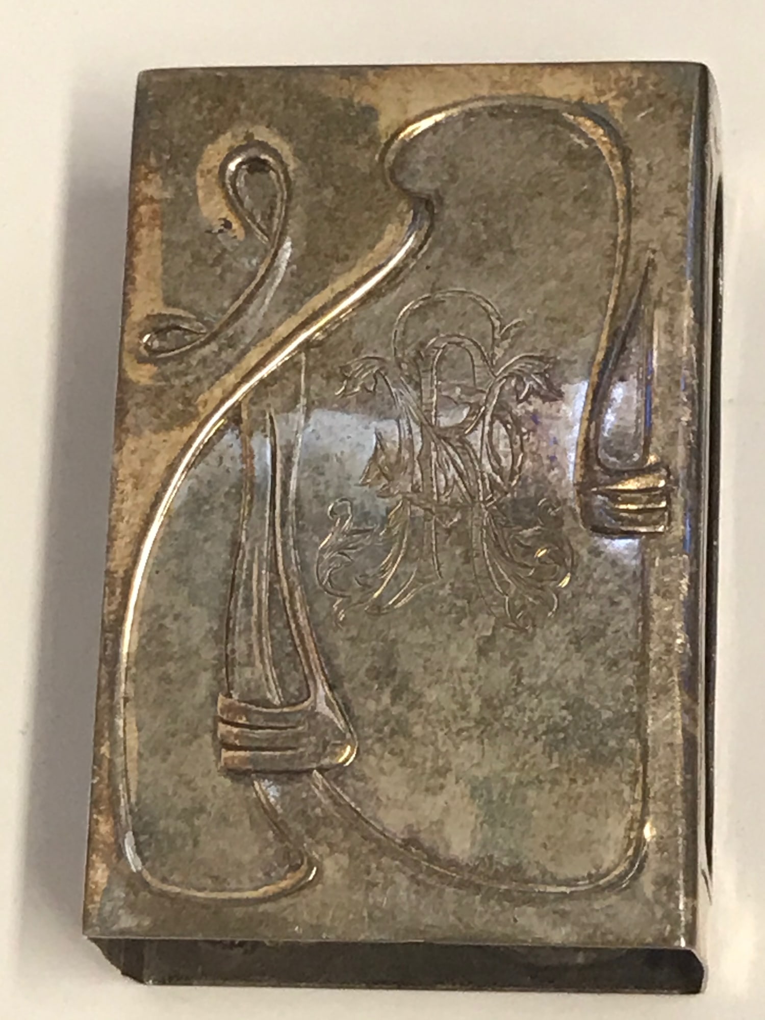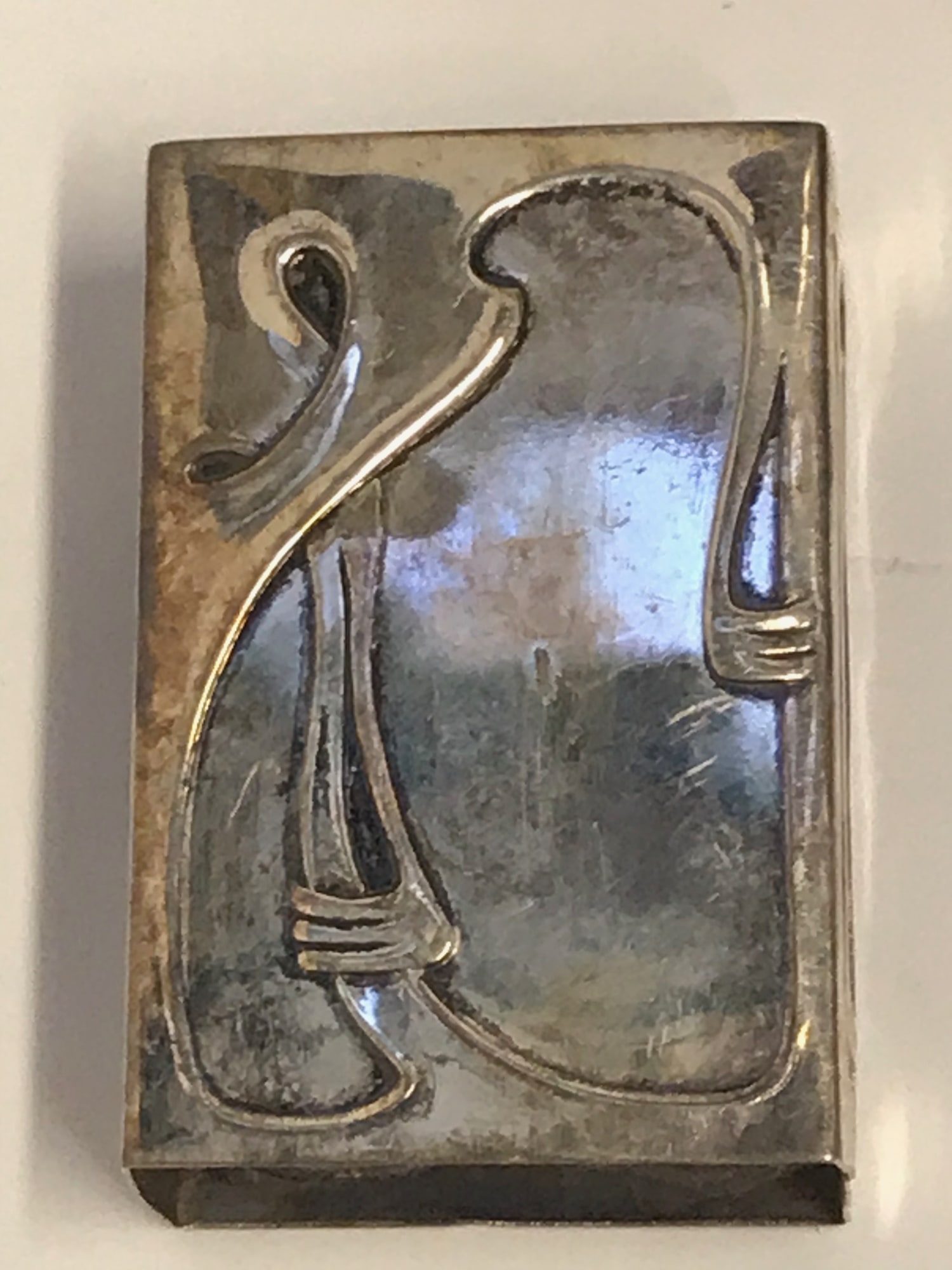 (b) silver/silver plate deco cigarette box holder, 2.25" x 1.5" x 3/4", 1 oz.